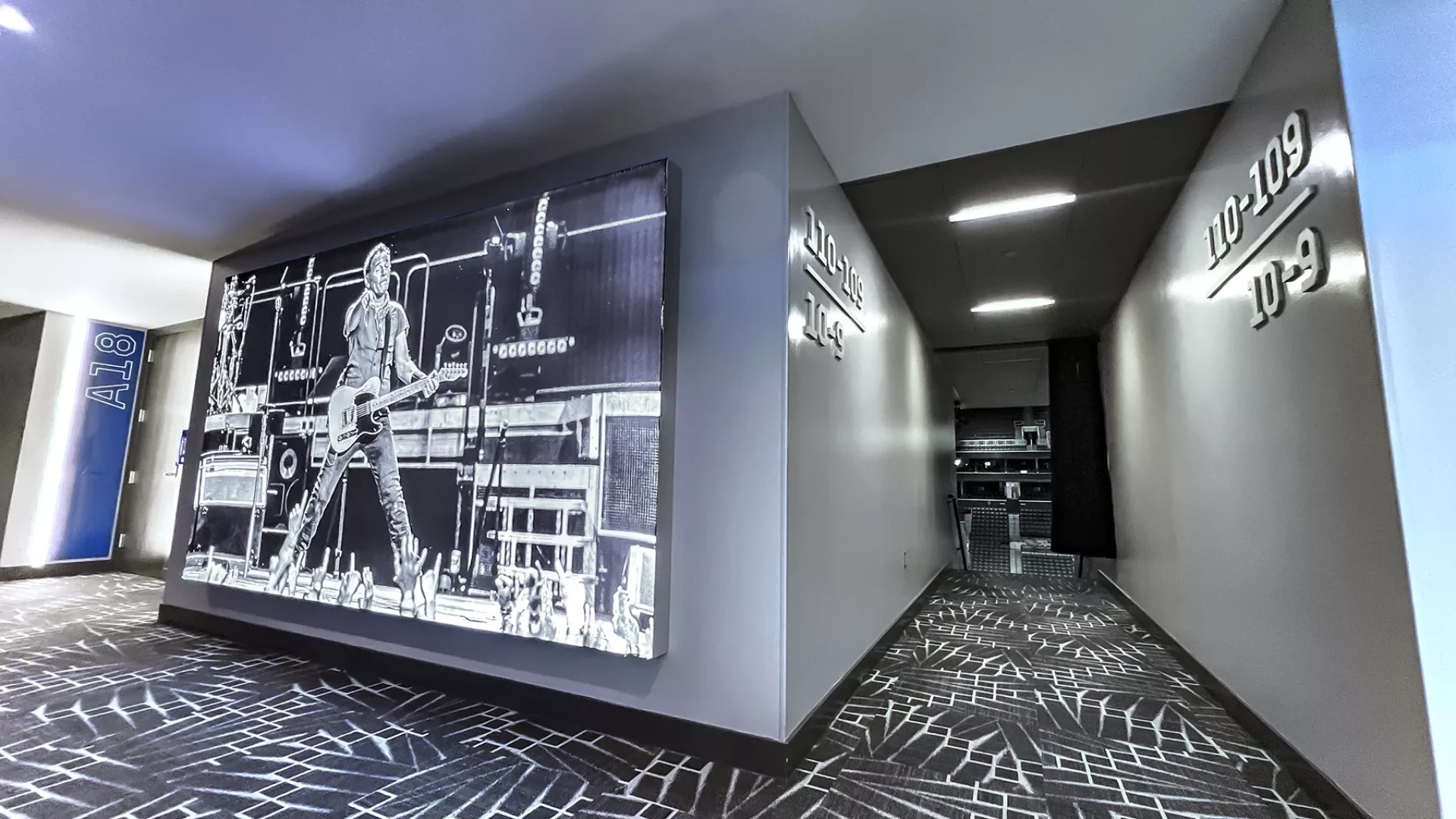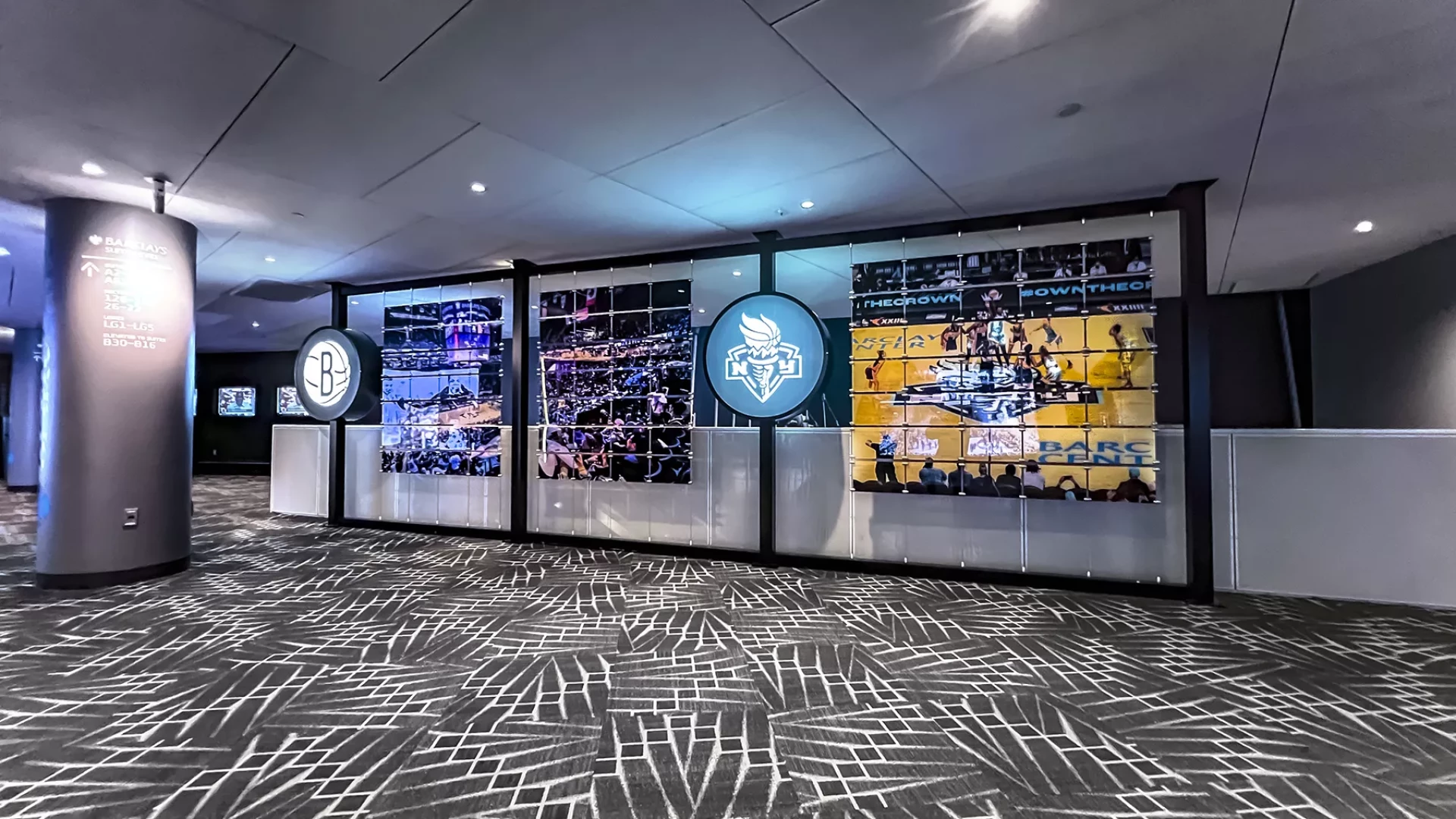 Forty Nine Degrees teamed up with the premium team at the Barclays Center to renovate their premium level. Dynamic lighting systems were strategically placed to create an inviting atmosphere, while illuminated tension graphics showcase past sports and music events. This integration aims to elevate the ambiance, showcase event diversity, and provide patrons with a premium, unique and memorable experience reflective of the venue's vibrancy.