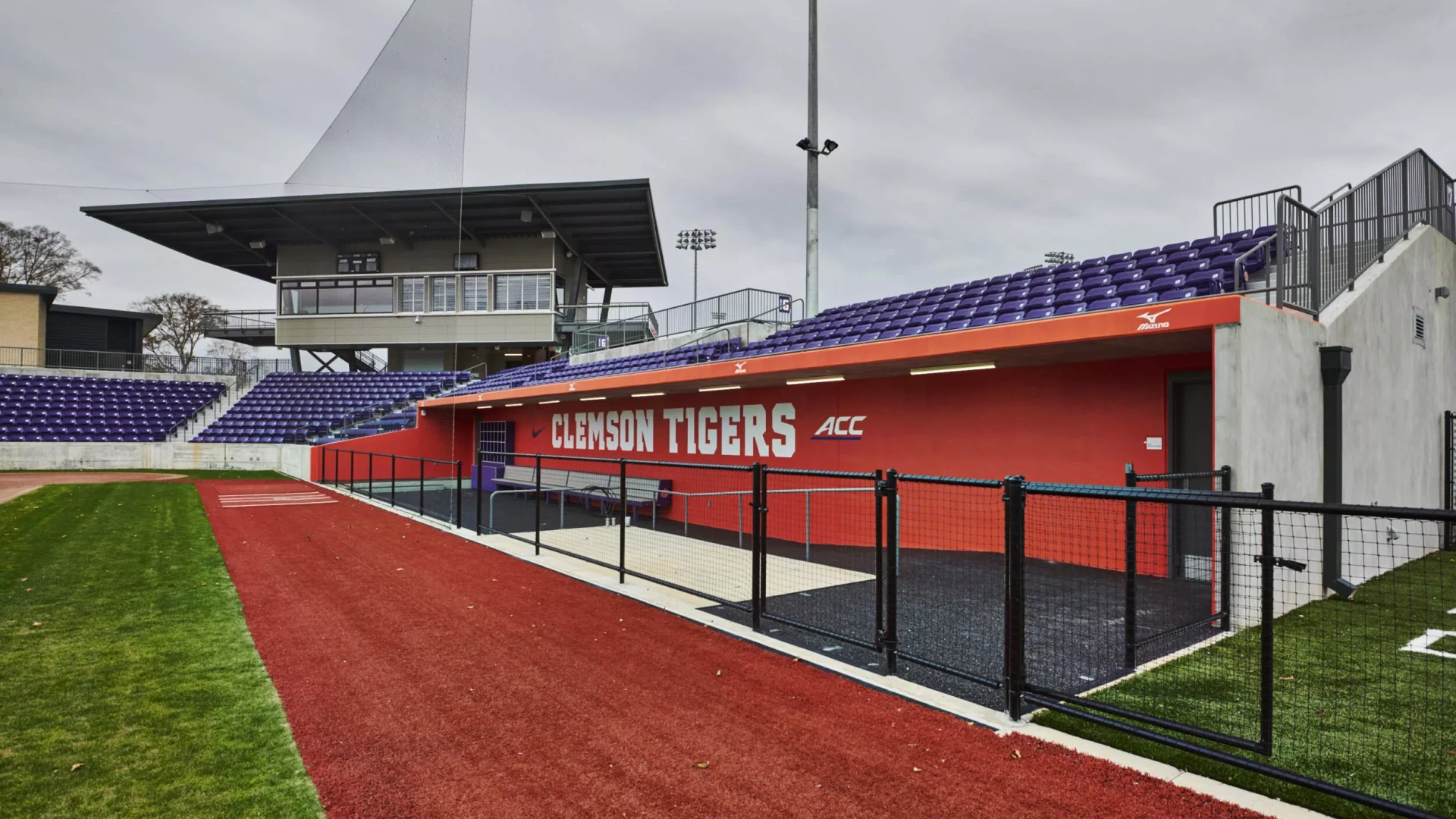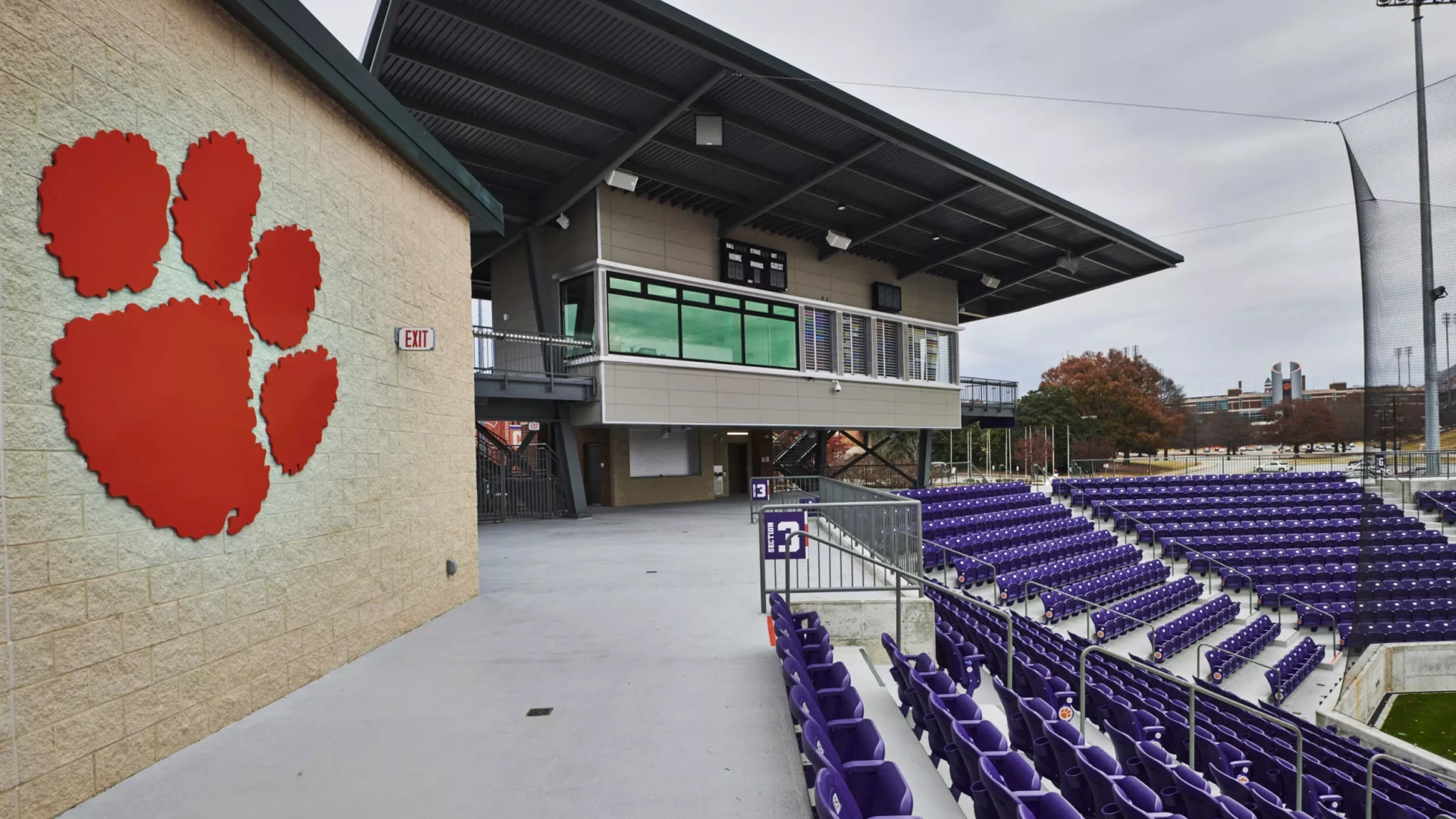 Forty Nine Degrees partnered with Clemson Softball to renovate their softball stadium and indoor team spaces. The renovation aimed to create an engaging and cohesive experience by incorporating the university's iconic colors and branding elements throughout the facilities. Through this collaboration, the stadium and team spaces were transformed into dynamic environments that fostered team pride and connected fans with the Clemson spirit.