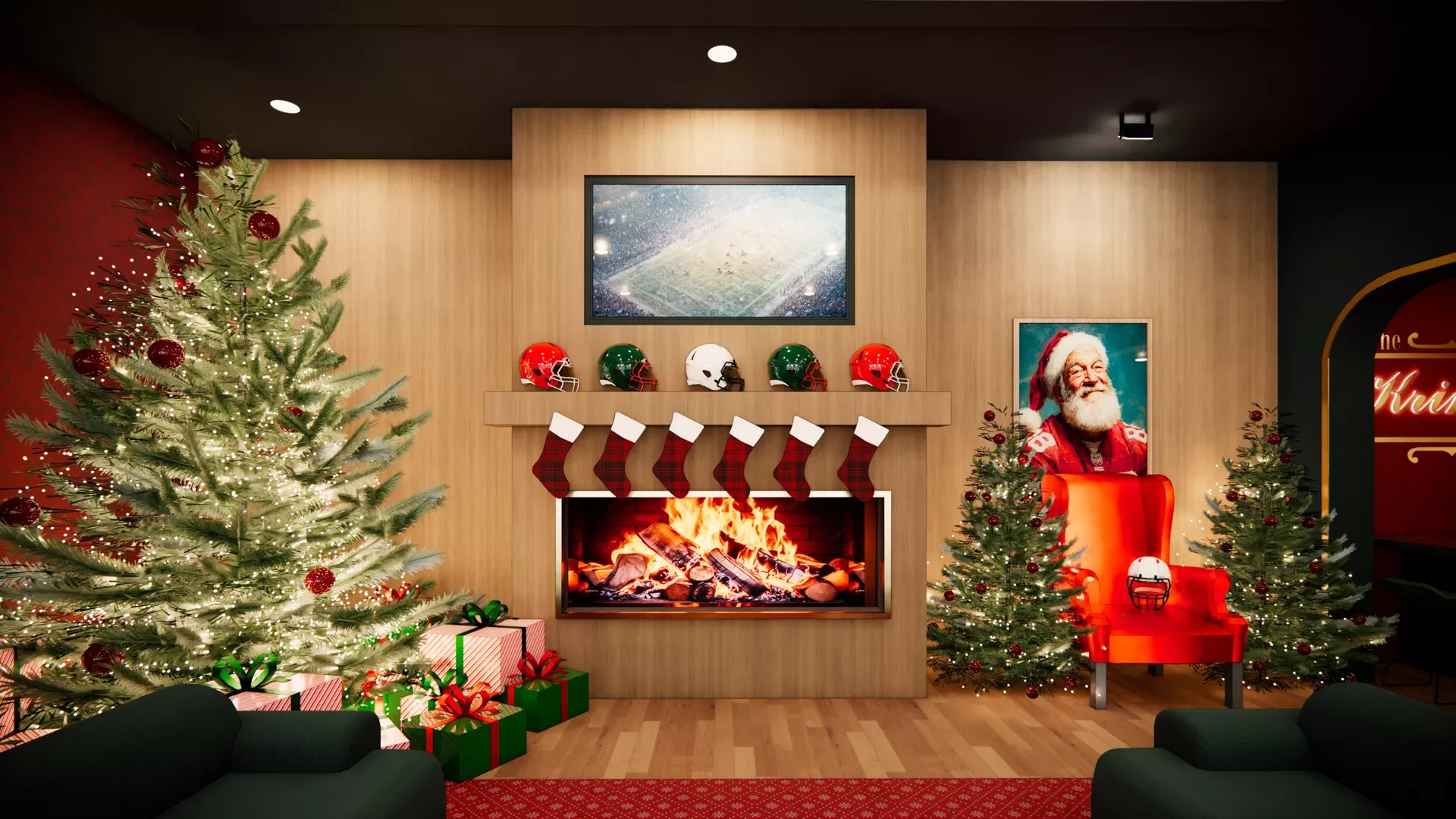 The result is a refined yet joy-filled environment that blends North Pole nostalgia with modern comfort. Every detail — from the textures to the typography to the tiniest twinkle light — works together to create a holly-jolly haven built for Santa, his crew, and the most dedicated Reindeer Games fans.