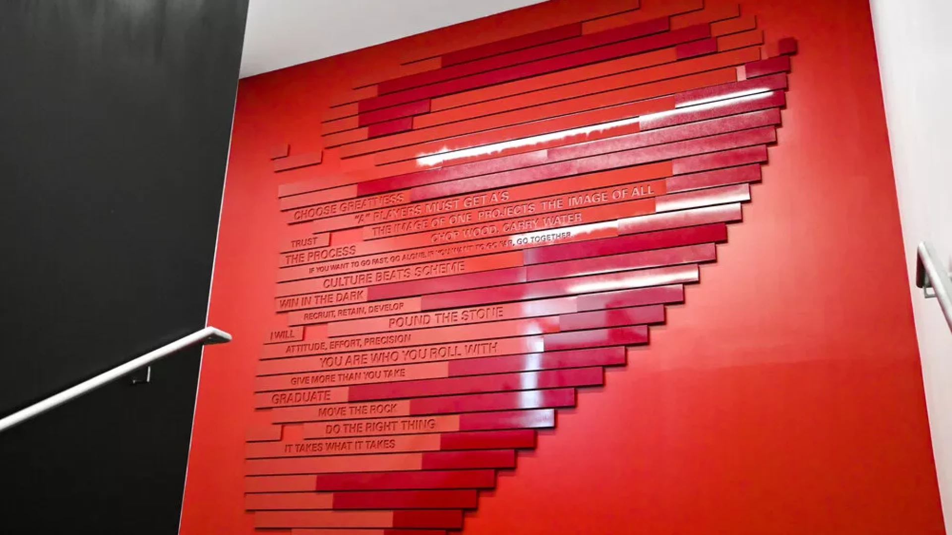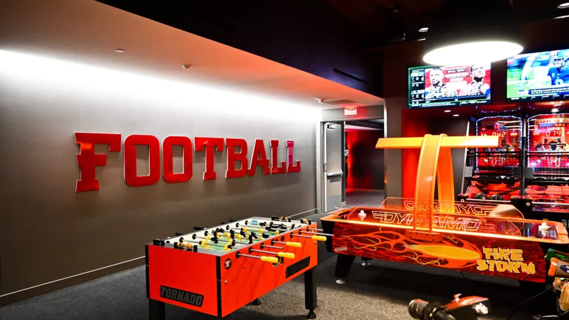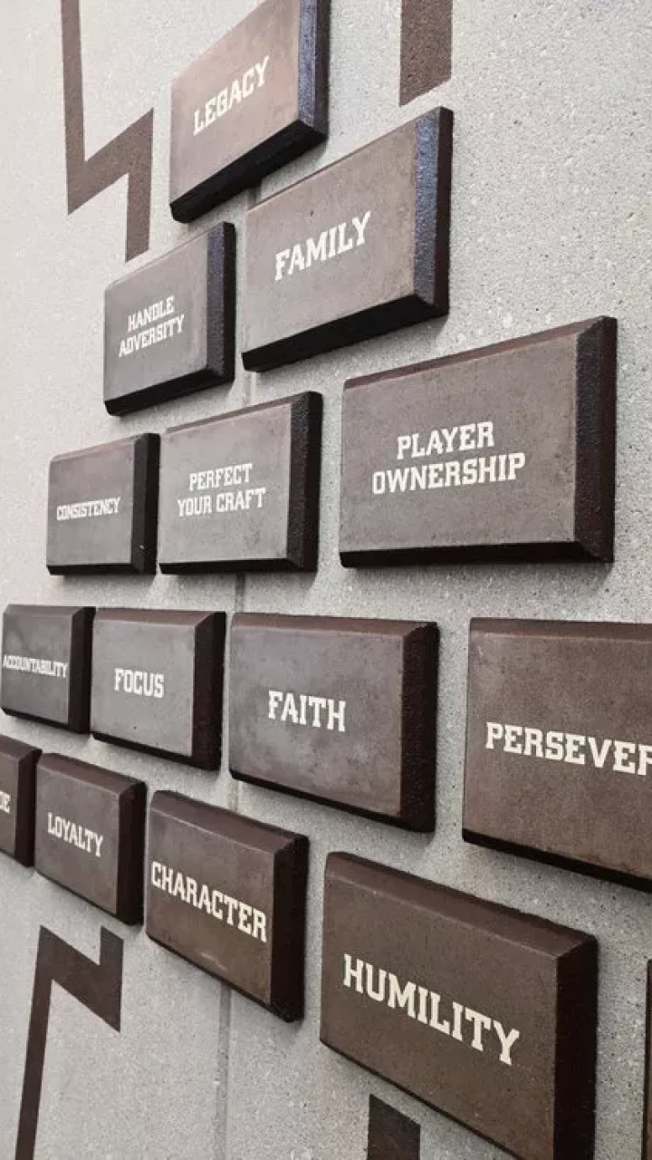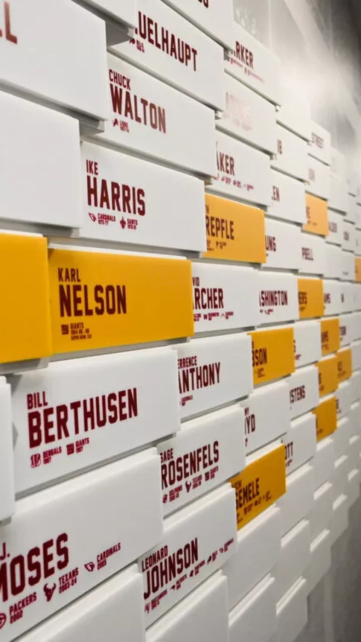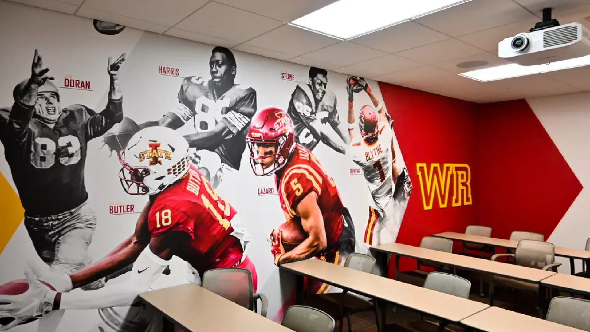 Iowa State added on to their football complex in 2020 and partnered with Forty Nine Degrees in 2021 on branding and graphics. Branding was added to the new lobby with large dimensional lettering which is visible from the parking lot, players locker room, players lounge, hallways and all football position rooms. An illuminated gear wall was added outside of the locker room to showcase ISU uniforms. In addition to the inside, outside branding was completed that can be seen from inside of Jack Trice Stadium.