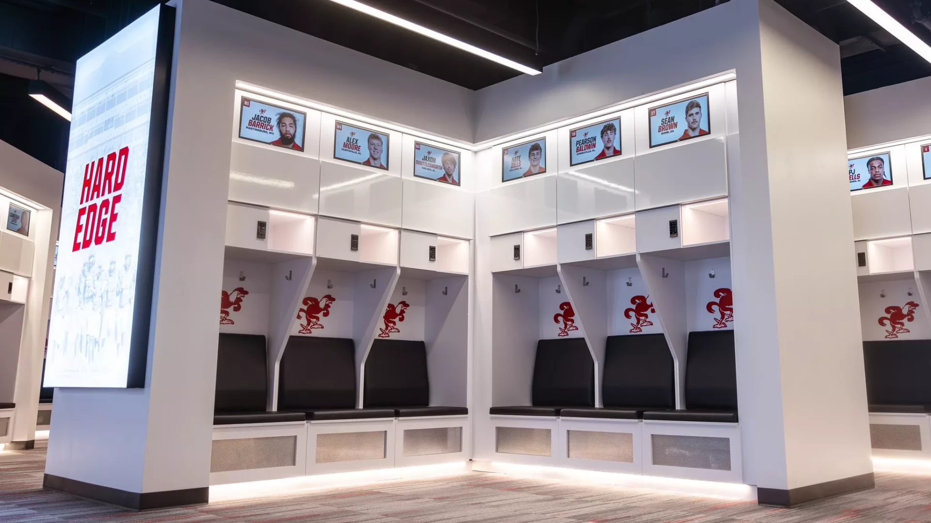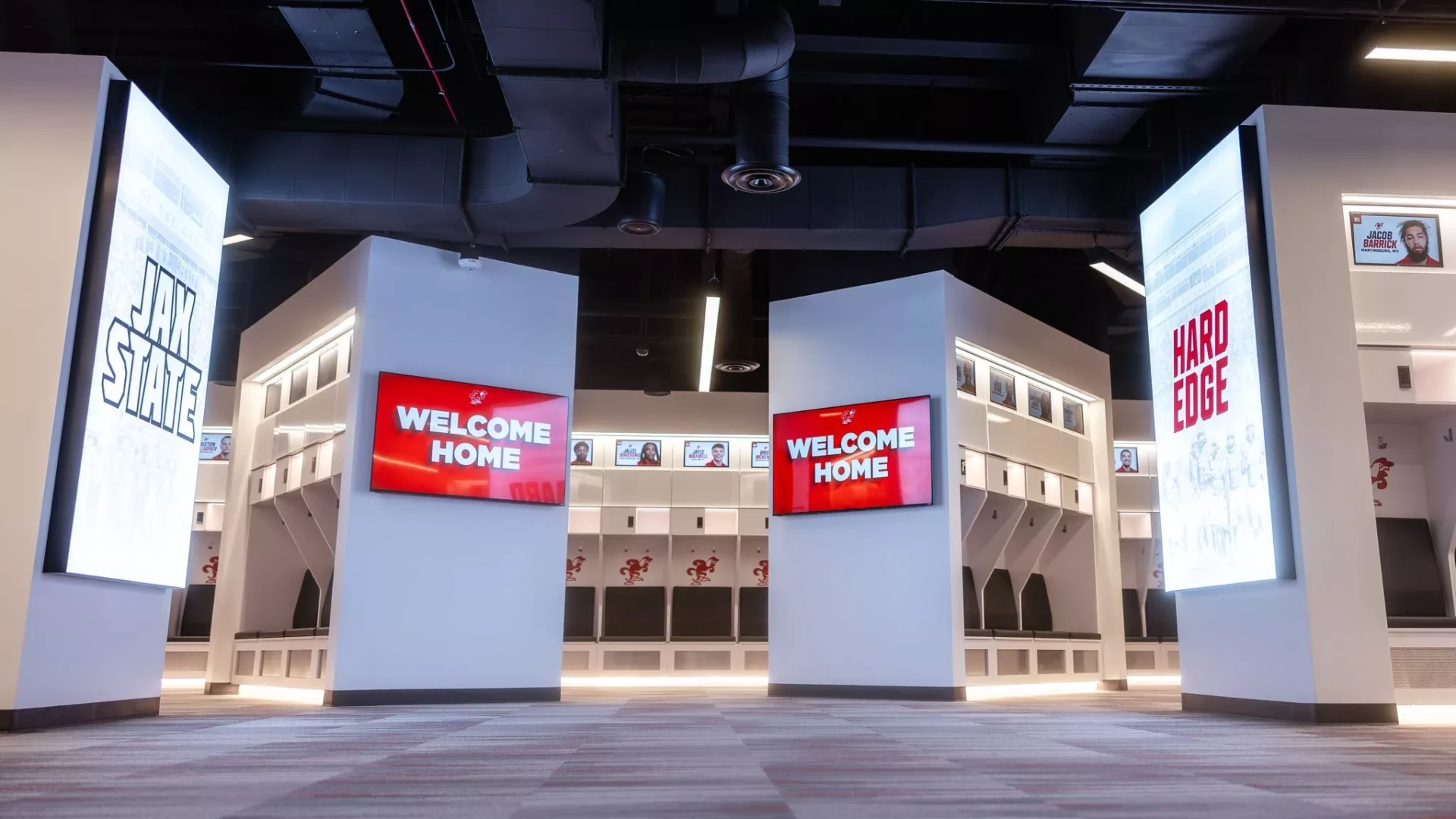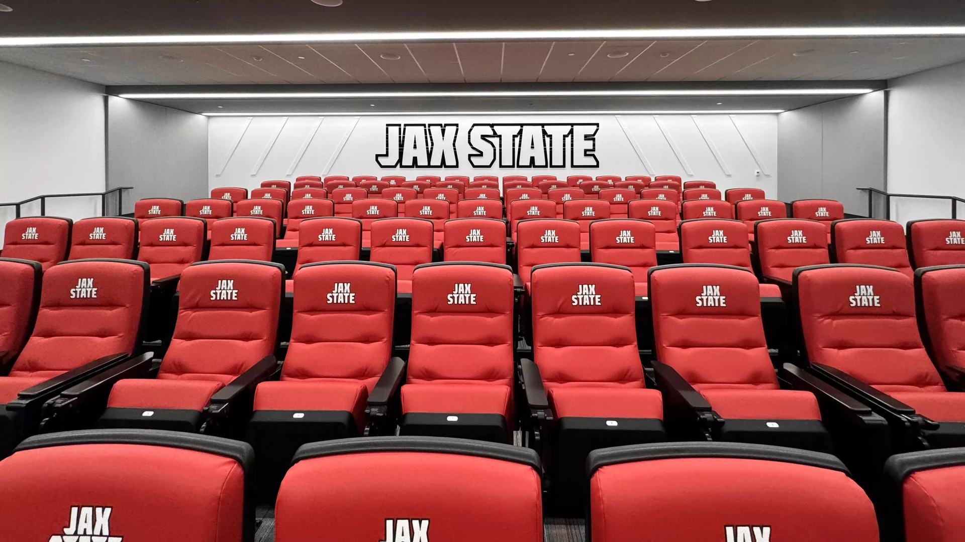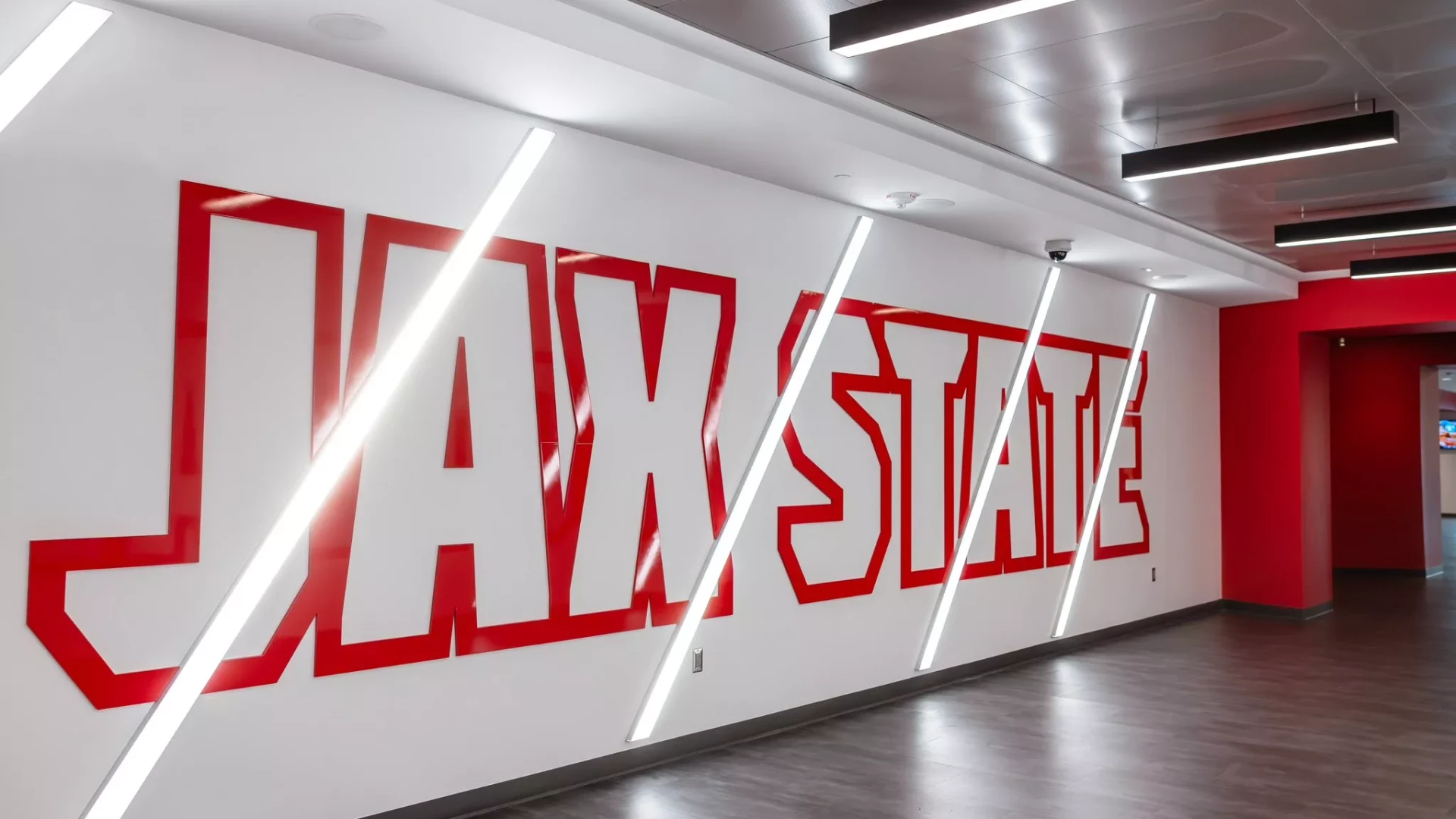 Forty Nine Degrees partnered with Jacksonville State Football on the design-build of their new training center, delivering a modern space that reflects the pride and ambition of the Gamecocks. The facility features a bold players’ hallway, team meeting rooms, and a state-of-the-art locker room, each designed to energize athletes and reinforce program identity.