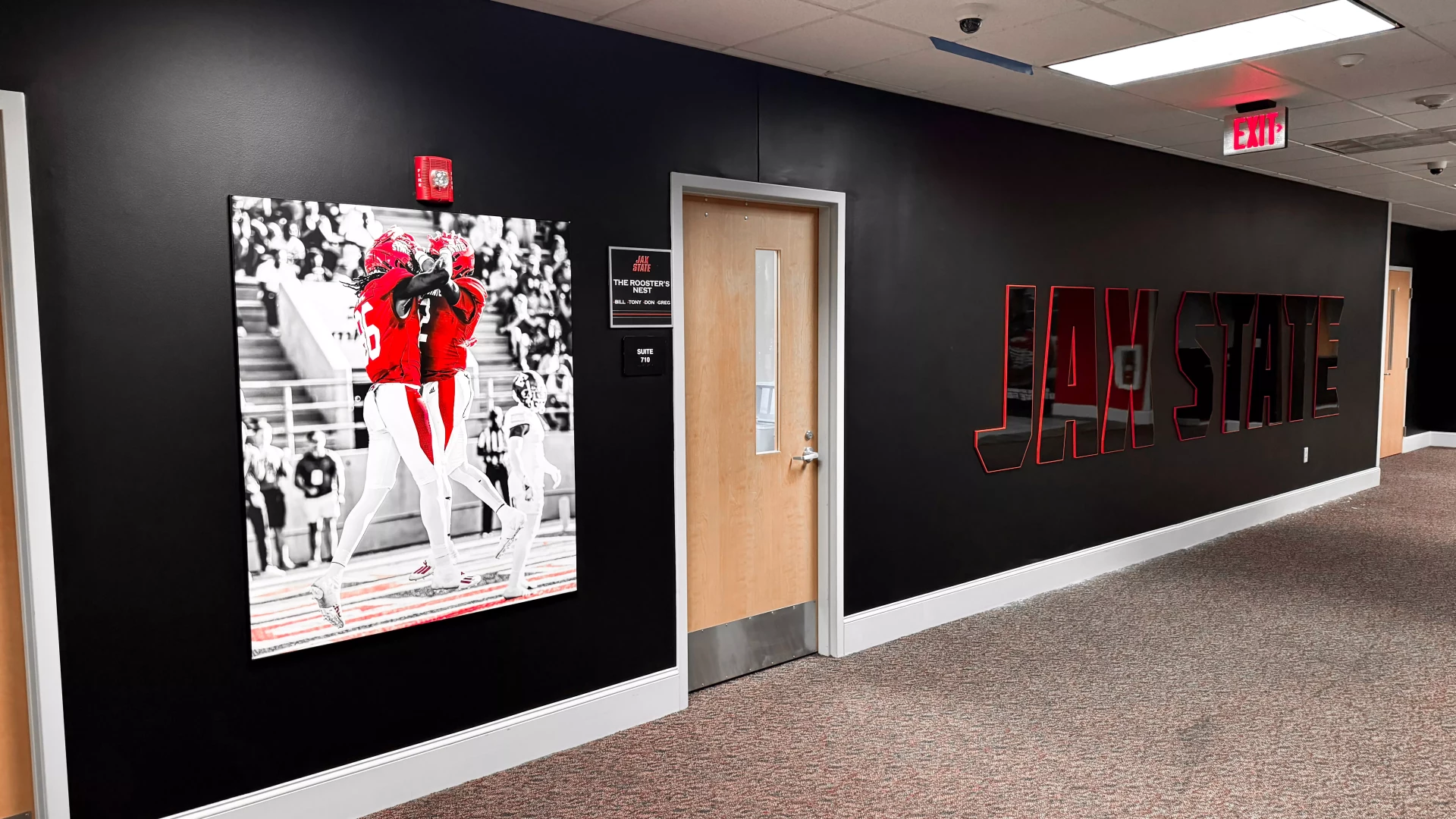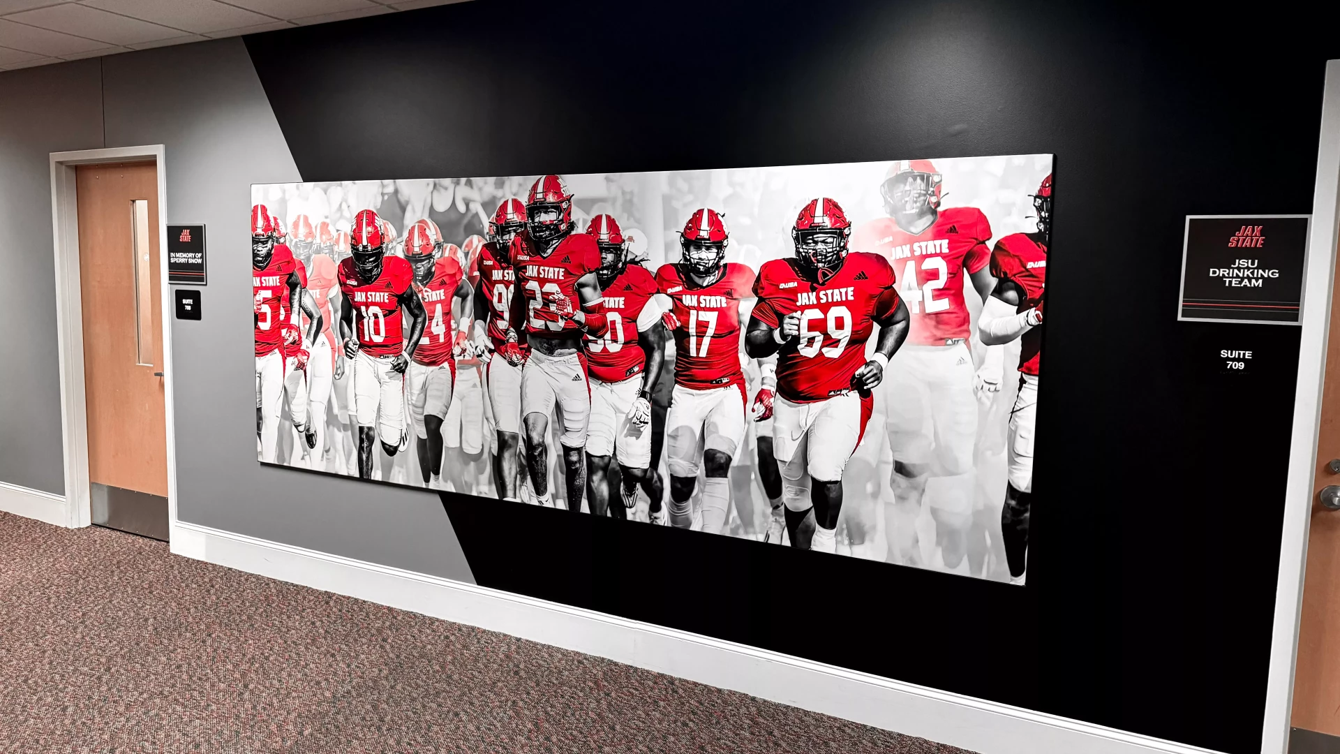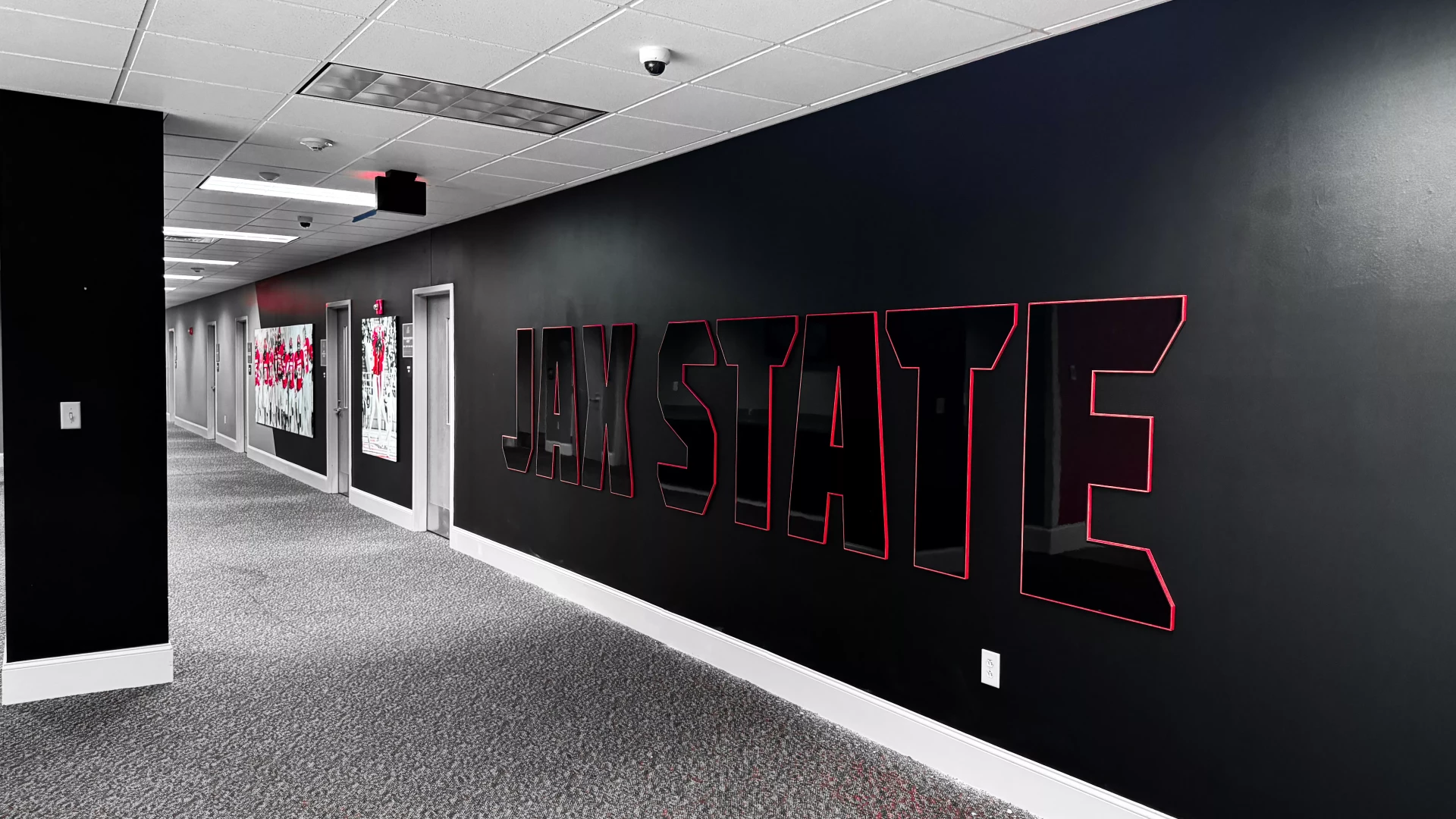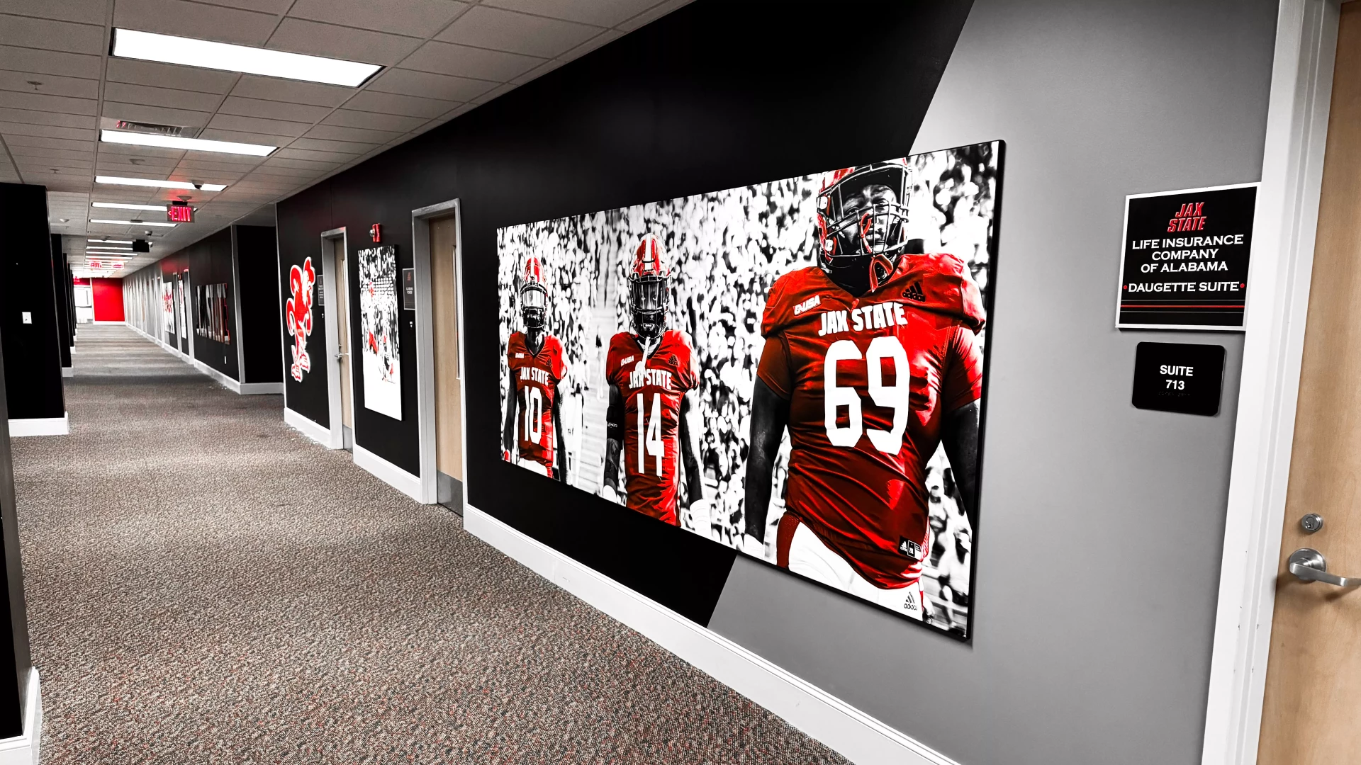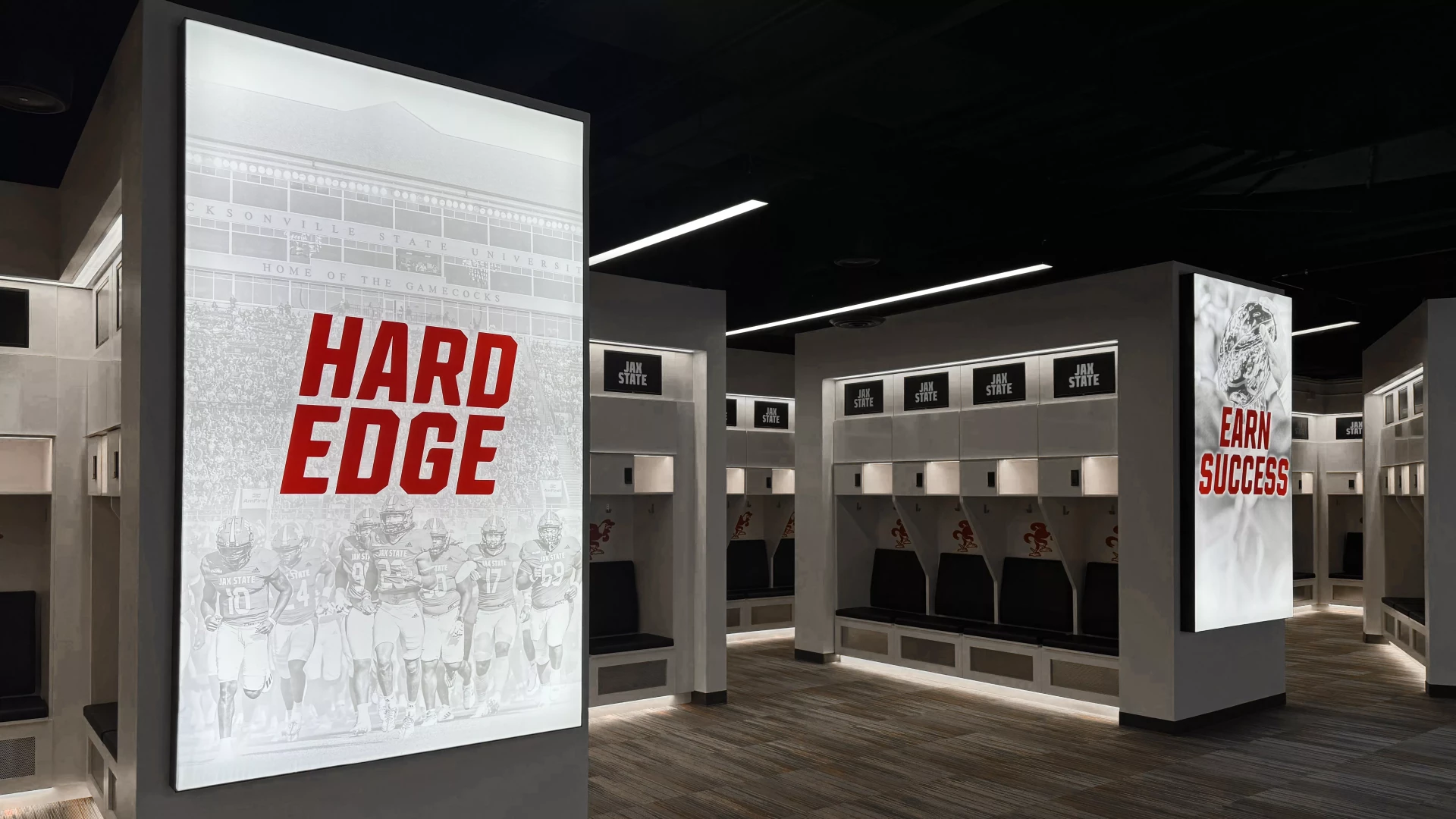 From concept through installation, our team ensured every detail captured Jacksonville State’s brand and elevated the daily athlete experience. The result is a cohesive environment built to inspire players, impress recruits, and support the continued growth of Gamecock Football.