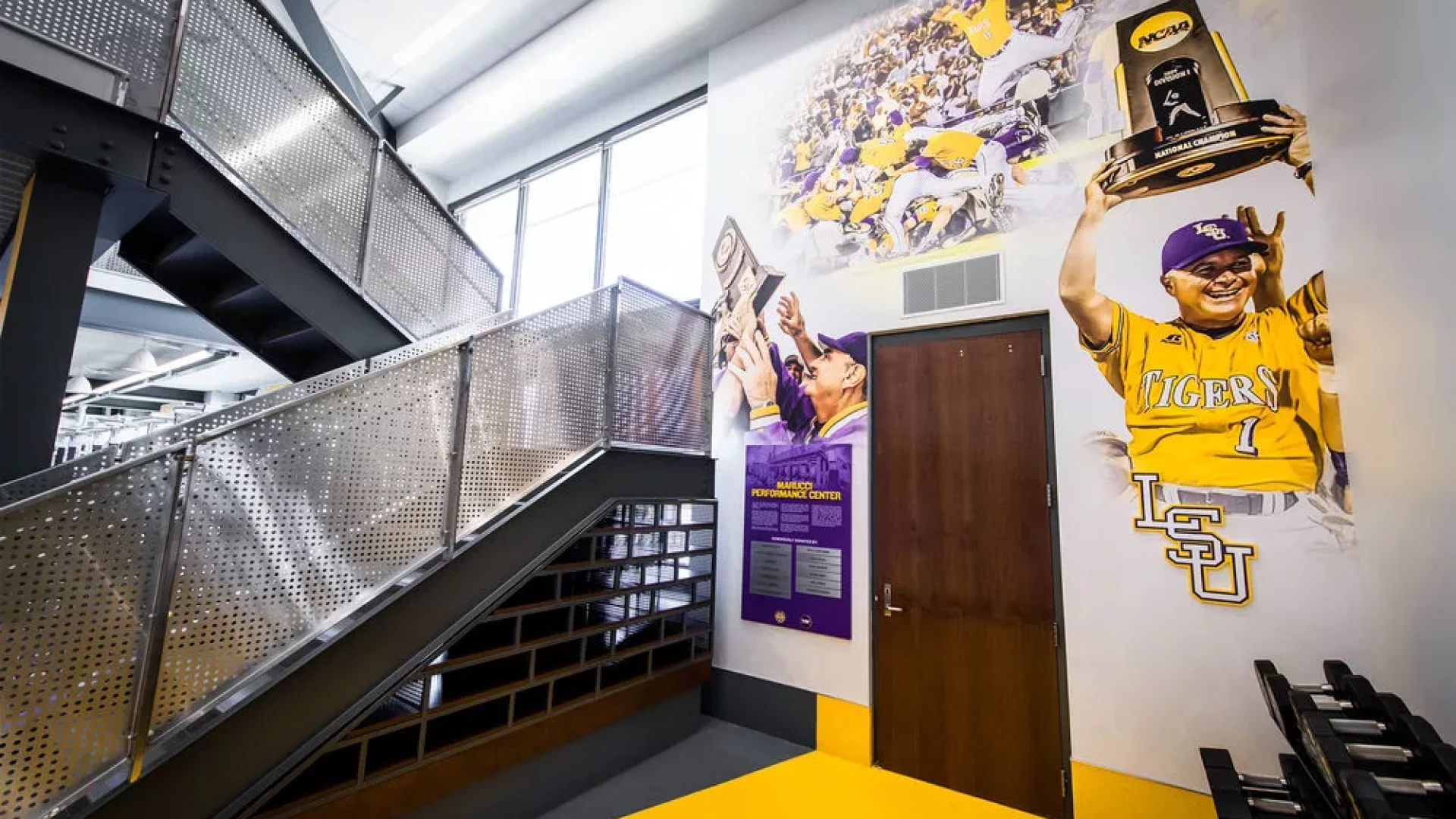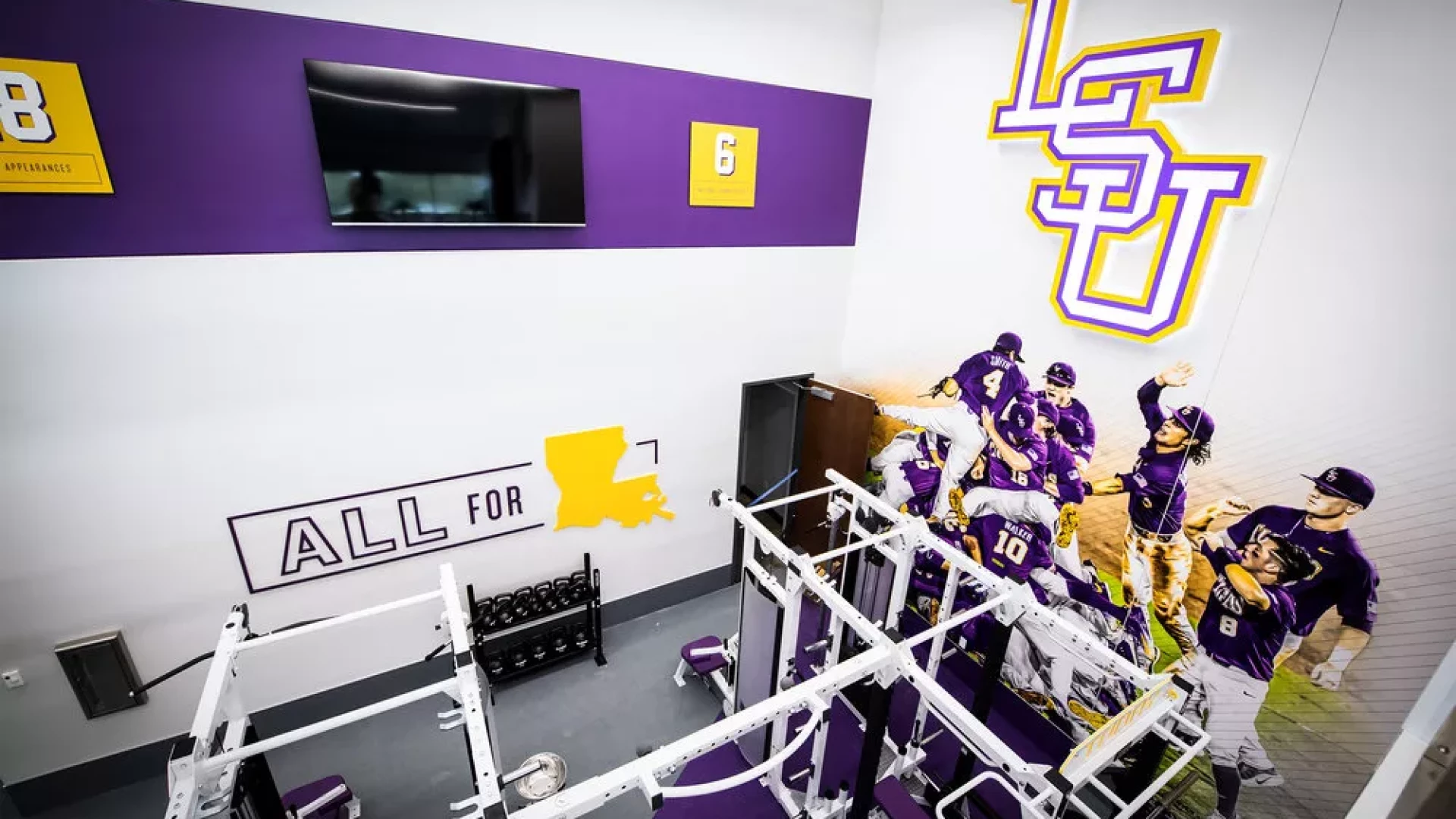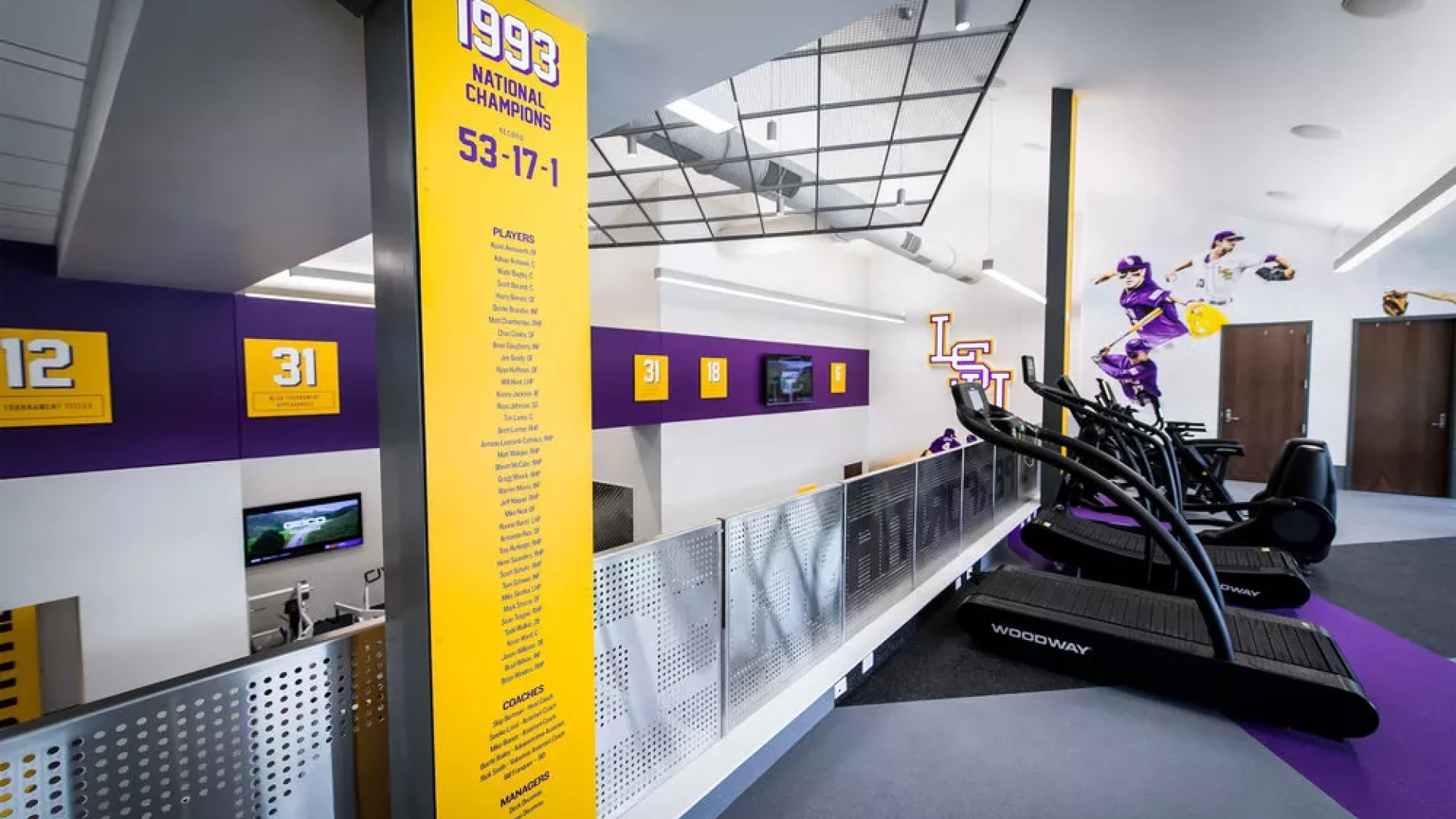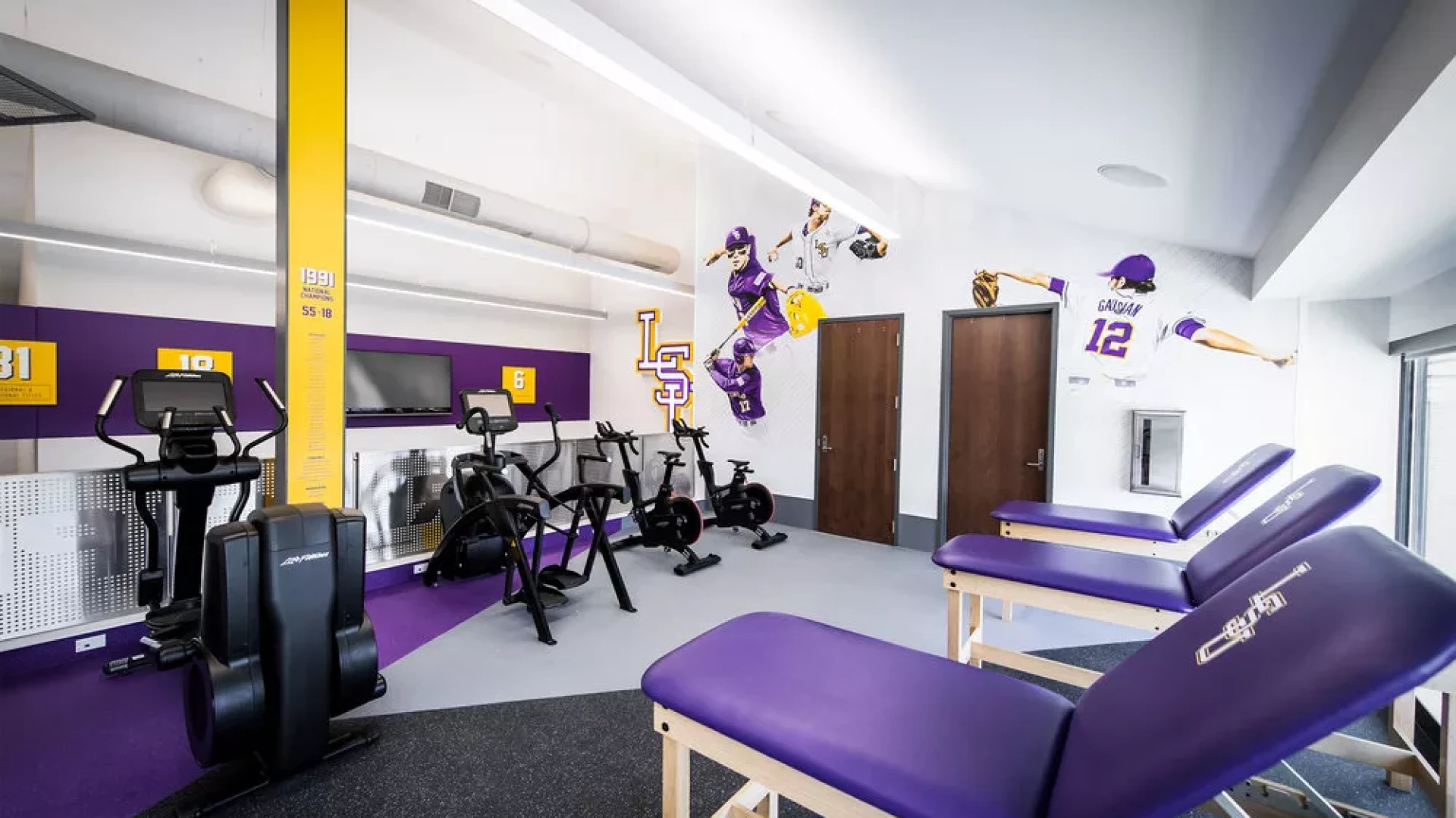Forty Nine Degrees collaborated with LSU and the Tiger Athletic Foundation to create a first class training facility for their legendary baseball program. State-of-the-art graphics and displays enhance the history and rich tradition of LSU Baseball. The 3,500 square foot weight room also includes a large cardio mezzanine, nutritional fueling station for student-athletes and a private locker room for former Tigers to utilize when preparing for MLB spring training.