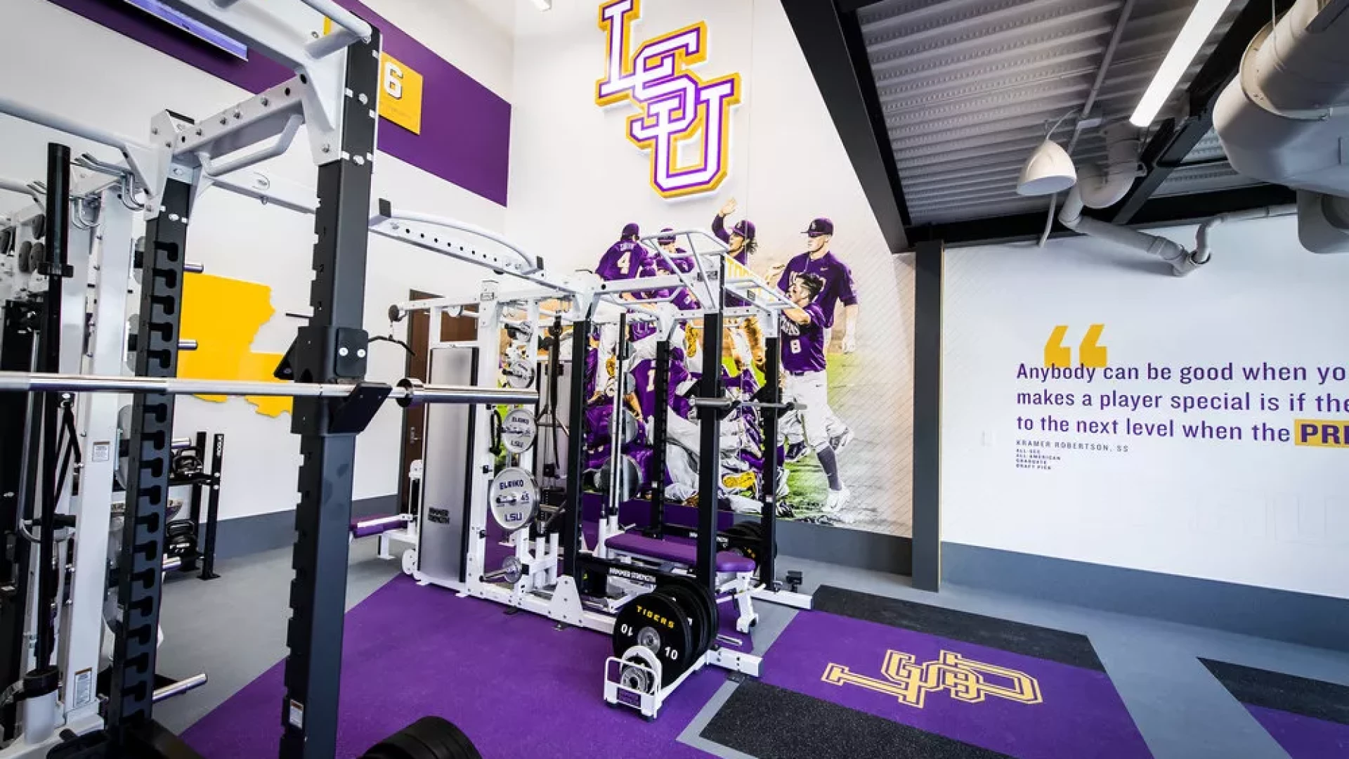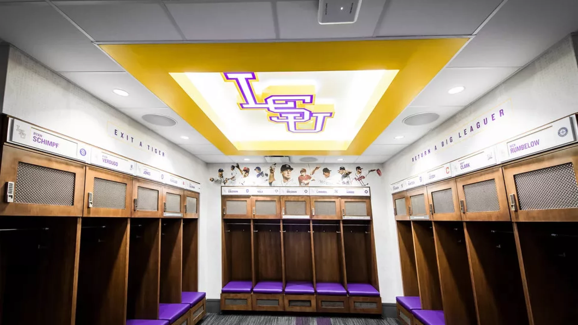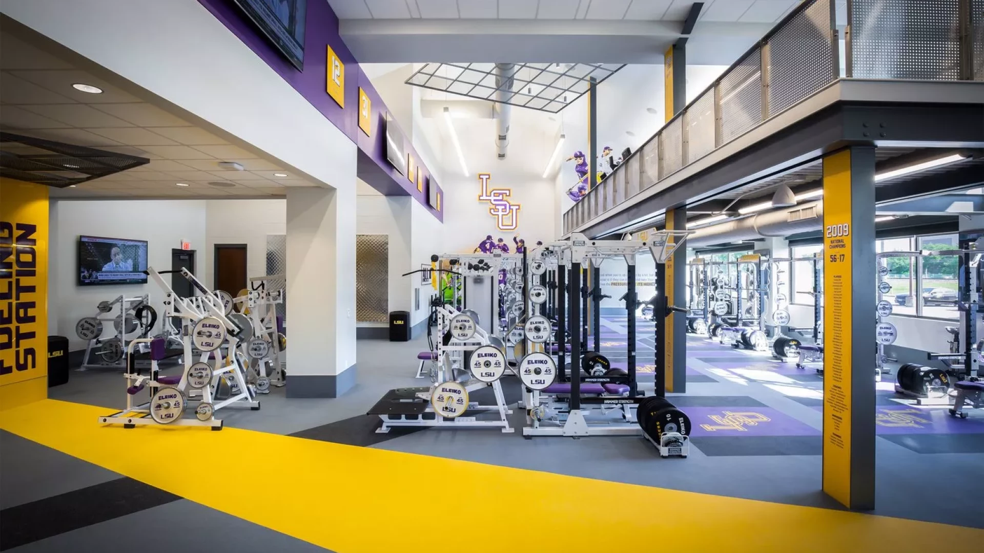 Forty Nine Degrees collaborated with LSU and the Tiger Athletic Foundation to create a first class training facility for their legendary baseball program. State-of-the-art graphics and displays enhance the history and rich tradition of LSU Baseball. The 3,500 square foot weight room also includes a large cardio mezzanine, nutritional fueling station for student-athletes and a private locker room for former Tigers to utilize when preparing for MLB spring training.