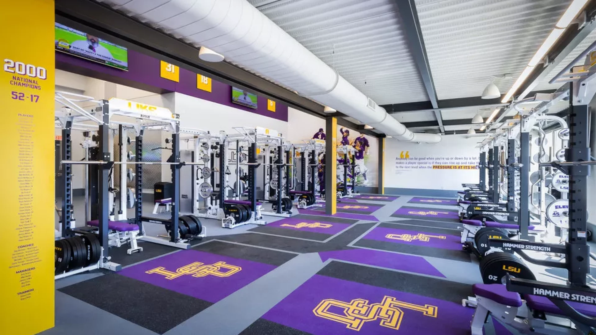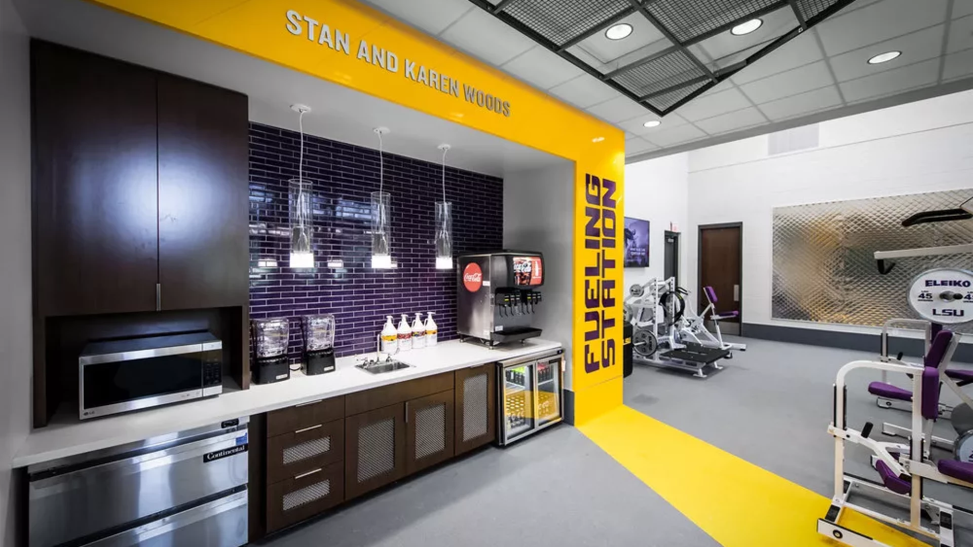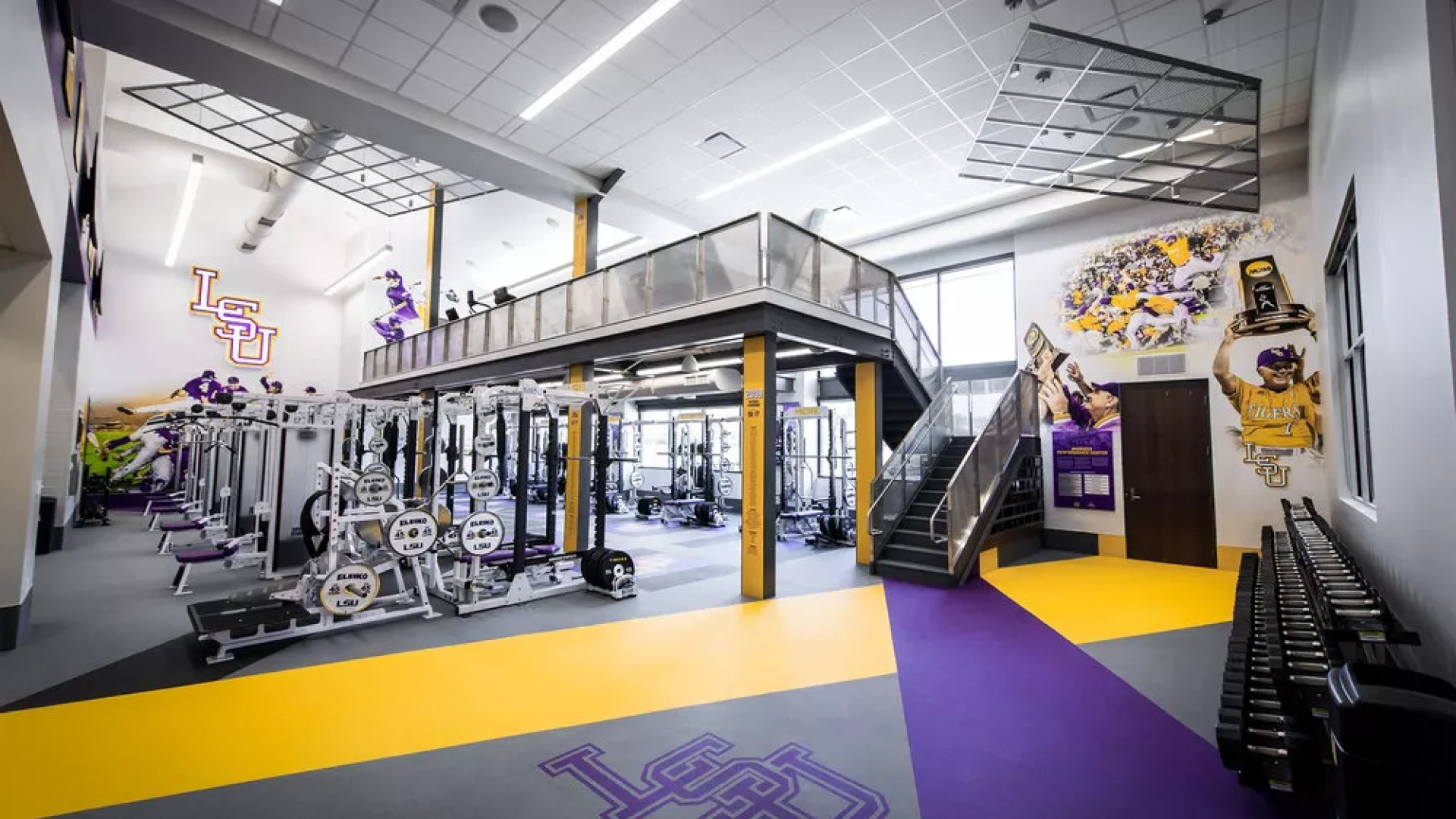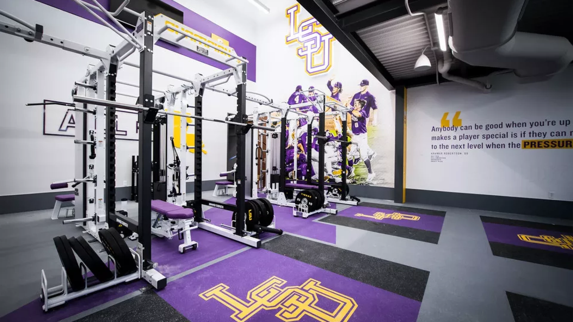 Forty Nine Degrees collaborated with LSU and the Tiger Athletic Foundation to create a first class training facility for their legendary baseball program. State-of-the-art graphics and displays enhance the history and rich tradition of LSU Baseball. The 3,500 square foot weight room also includes a large cardio mezzanine, nutritional fueling station for student-athletes and a private locker room for former Tigers to utilize when preparing for MLB spring training.