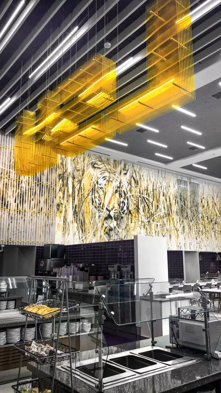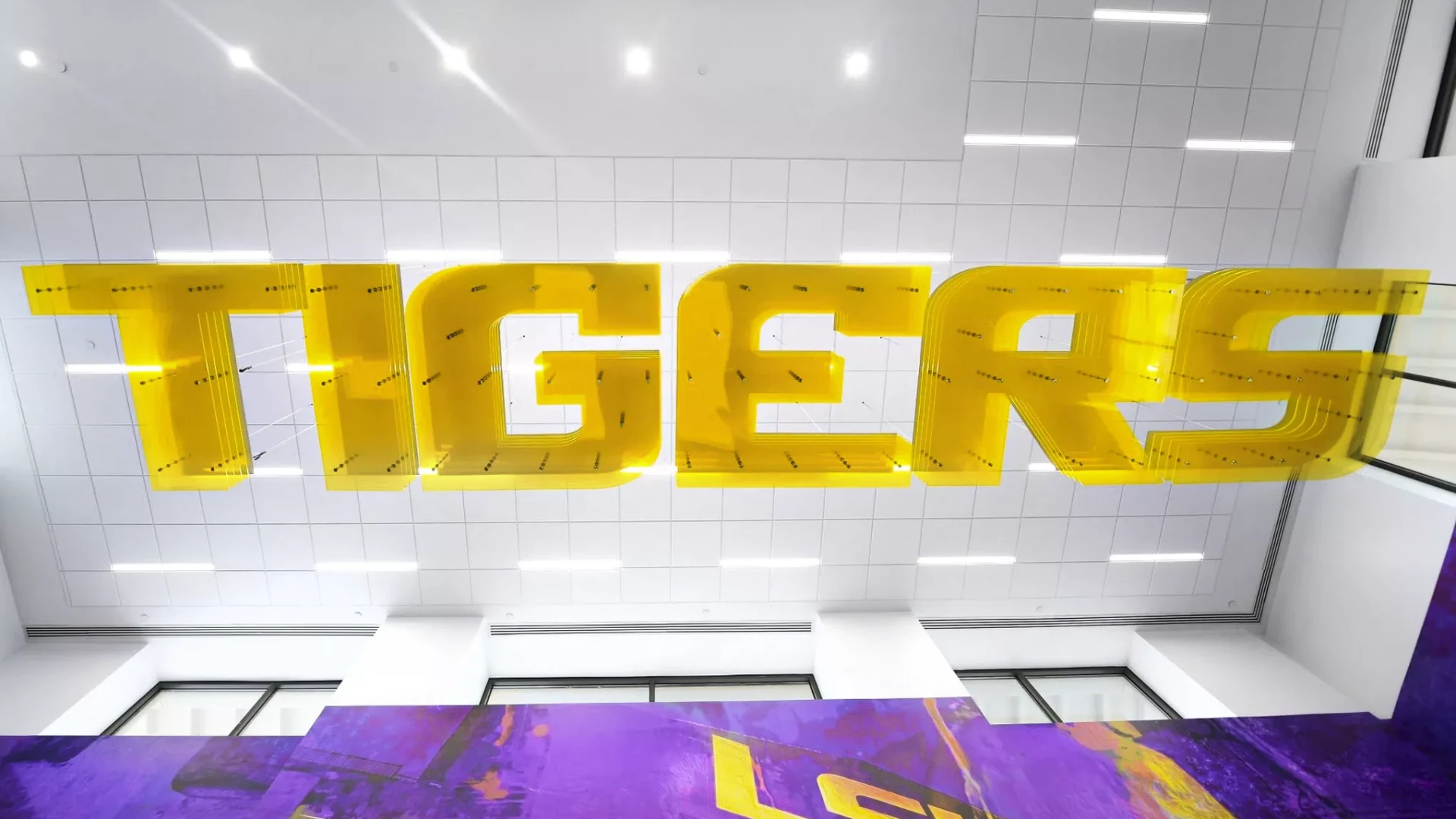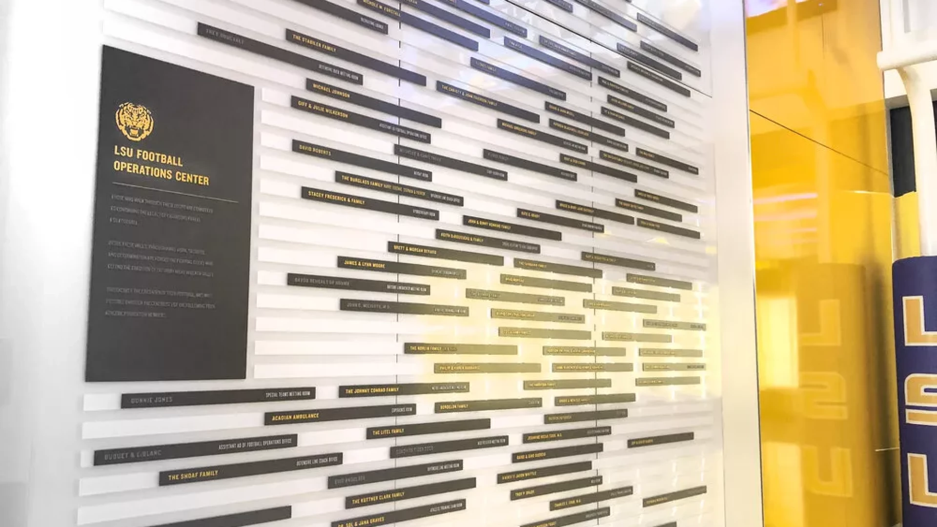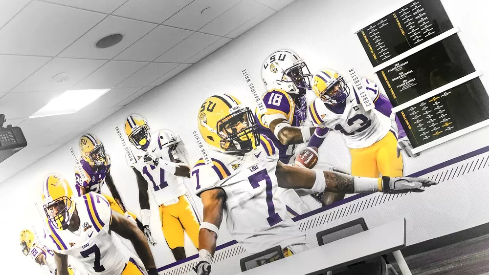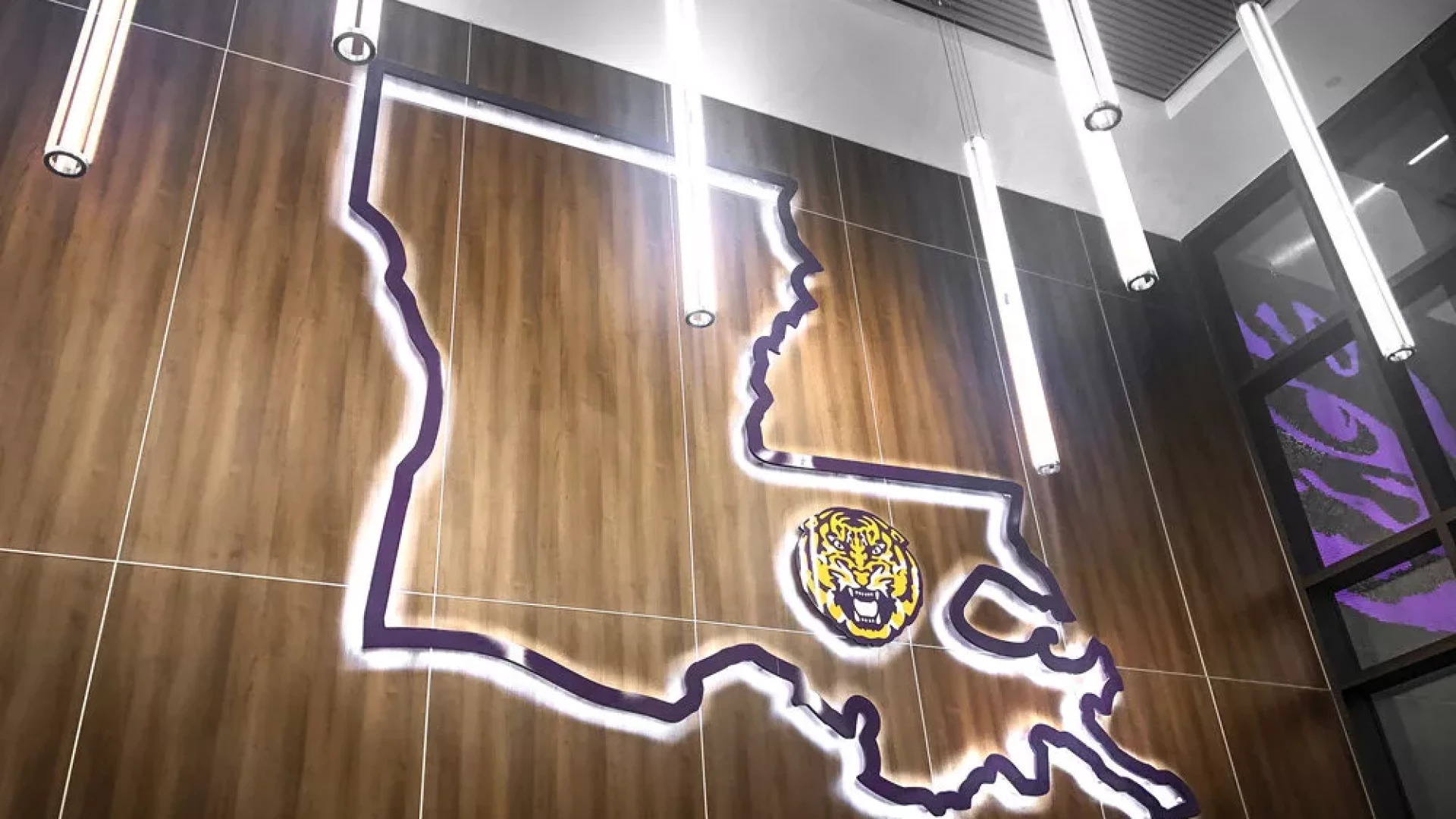 LSU, the Tiger Athletic Foundation and Forty Nine Degrees collaborated to enhance the newly renovated Football Operations and Performance Nutrition Center. The project included an addition of nearly 25,000 square feet, with a new training room, offices, locker room, player’s lounge and cafeteria. Forty Nine Degrees developed several spaces, including projection mapped displays, a custom NIKE corridor and an impactful NFL hallway, adorned with helmets from the respective NFL player's era.
