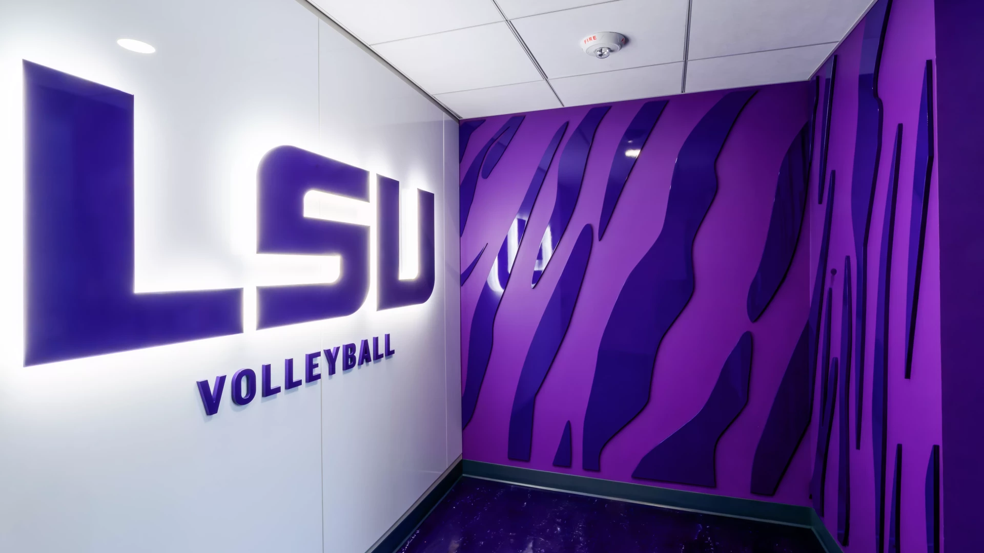A defining feature of the renovation is the strategic use of hallway spaces to tell the story of LSU Volleyball—celebrating the program’s history, highlighting present-day achievements, and looking ahead to its promising future. Through thoughtfully integrated visuals and storytelling elements, the updated corridors connect players and visitors alike to the team’s legacy and vision. The result is a powerful blend of inspiration and performance-driven design, enhanced by energetic color cues, that elevates the daily experience for athletes and ignites pride throughout the program.