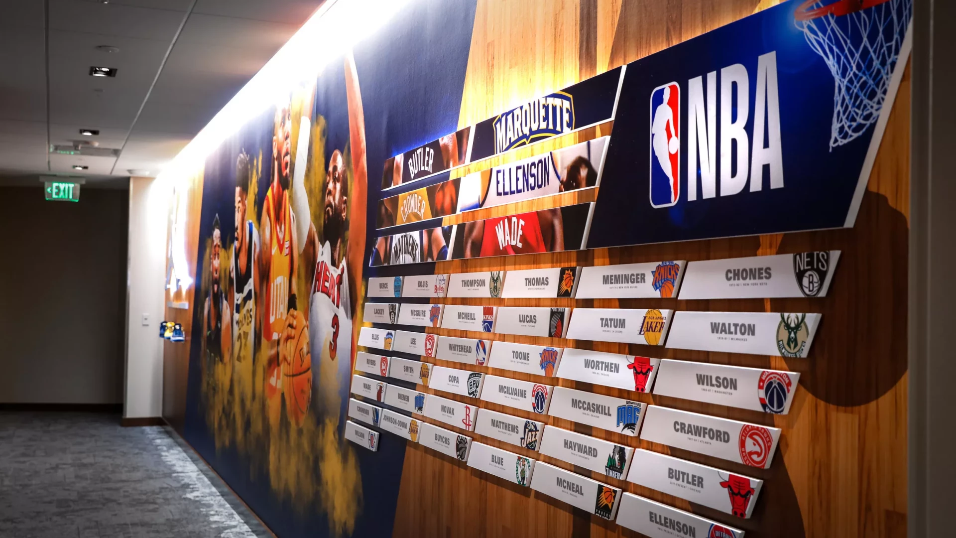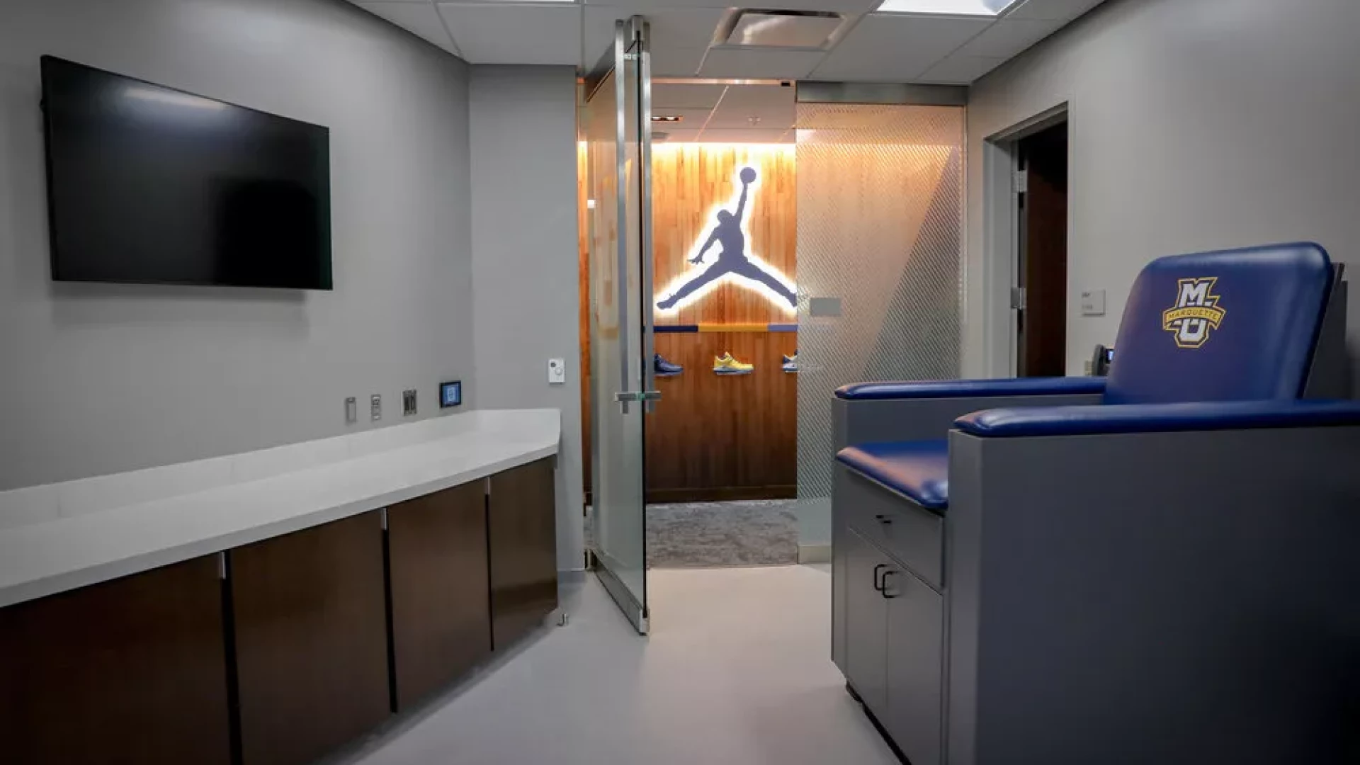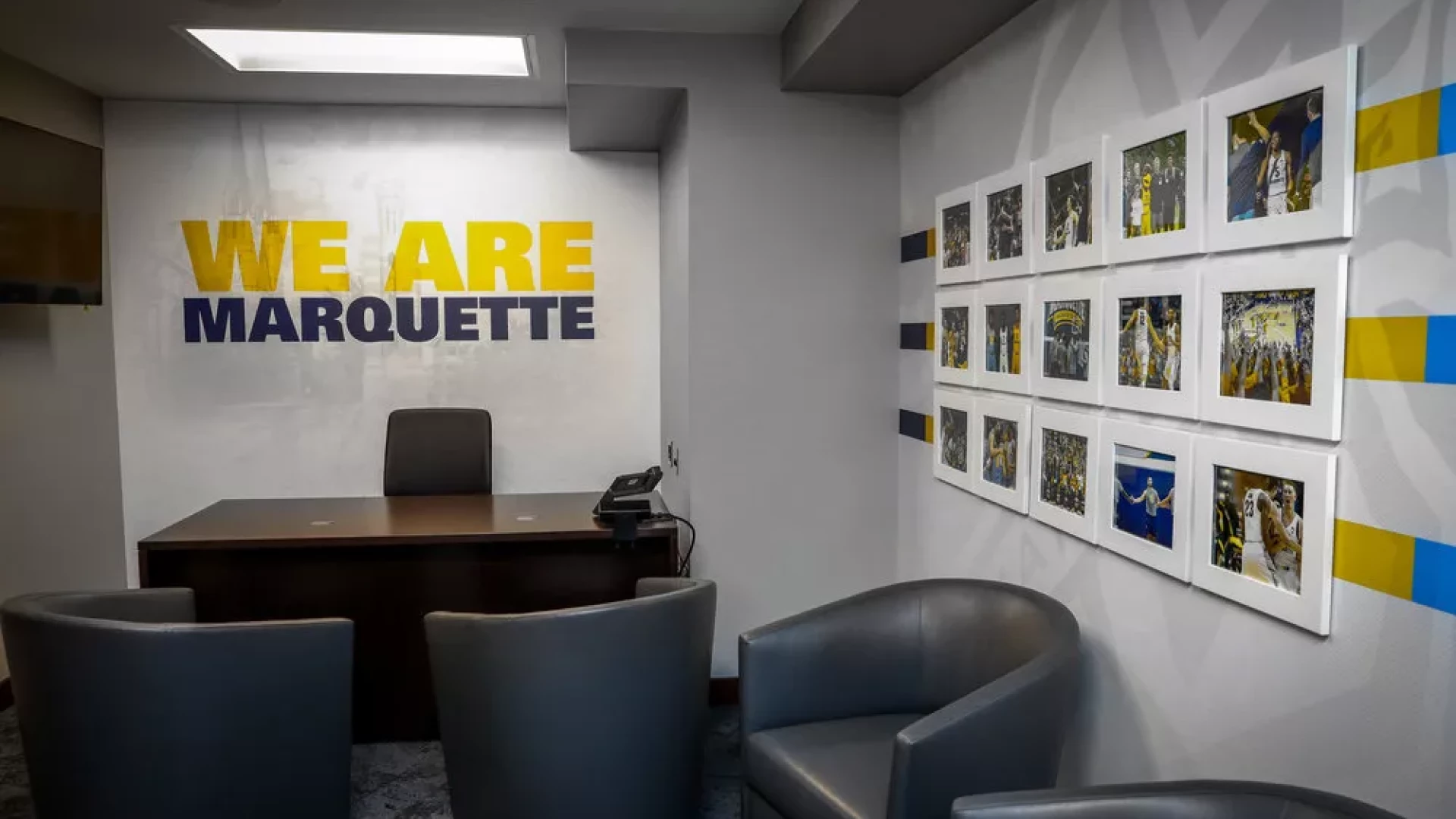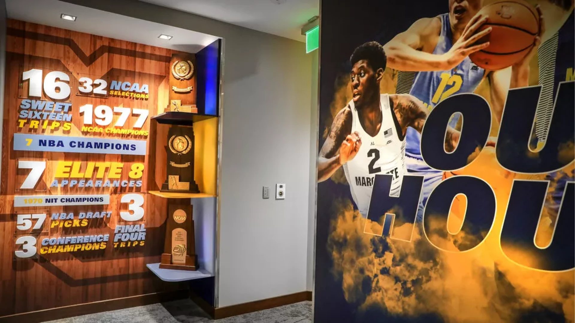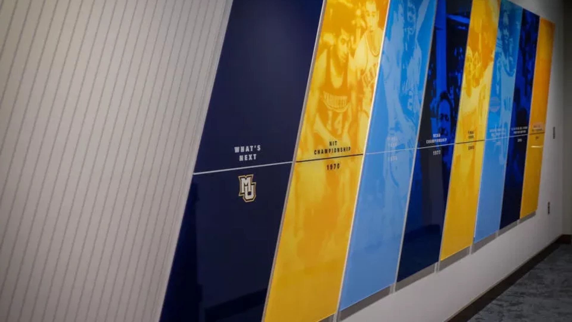 The newly constructed Fiserv Forum is a multi-purpose arena home to the NBA's Milwaukee Bucks and the Marquette University Men’s Basketball team. Opened in August of 2018, the arena includes a dedicated gameday facility for the Golden Eagles including team locker room, athletic training and coaches’ offices. Forty Nine Degrees worked with Marquette University to develop large-scale impact graphics, illuminated branding and a dynamic atmosphere for the team to call home. Innovative displays highlight NBA accomplishments, Conference Championships and communicate team attitude, creating a welcoming environment for current players and future recruits.