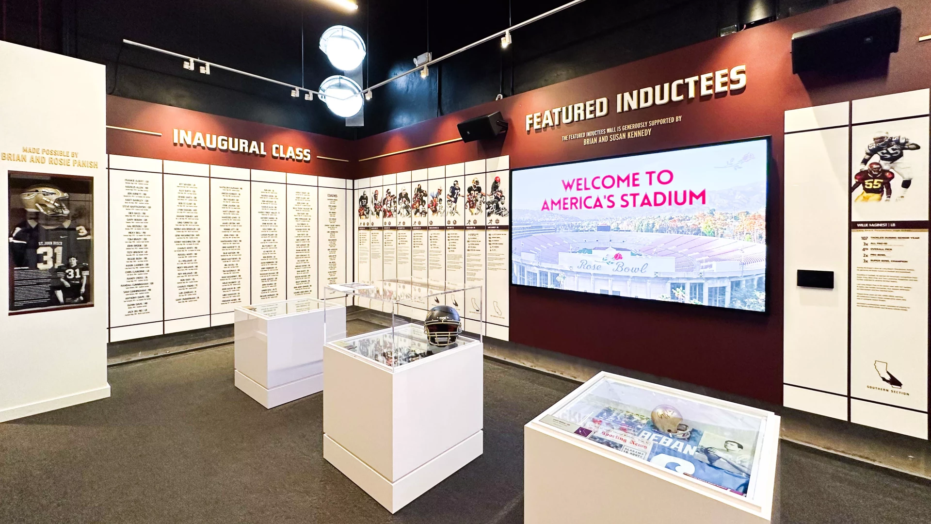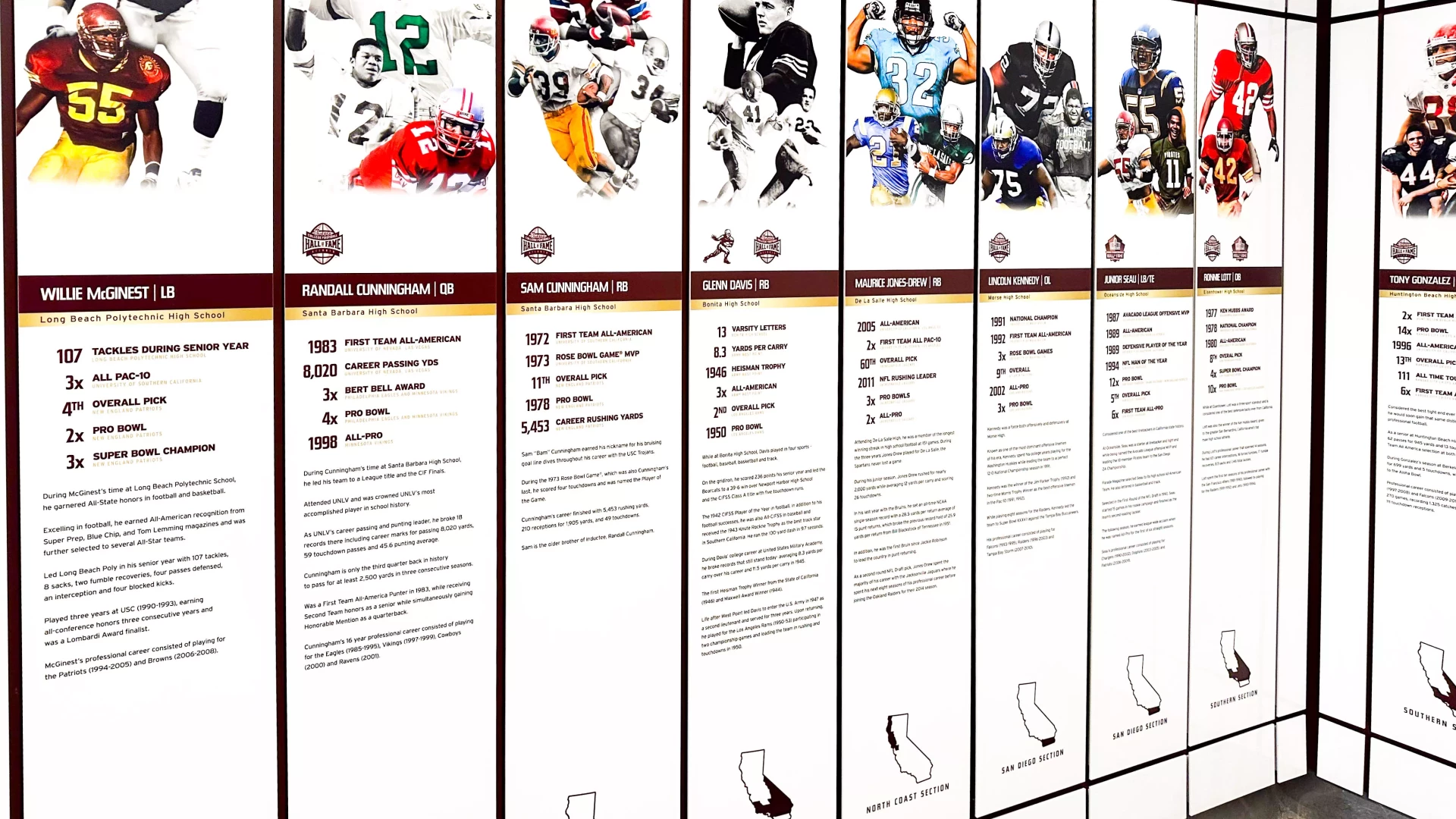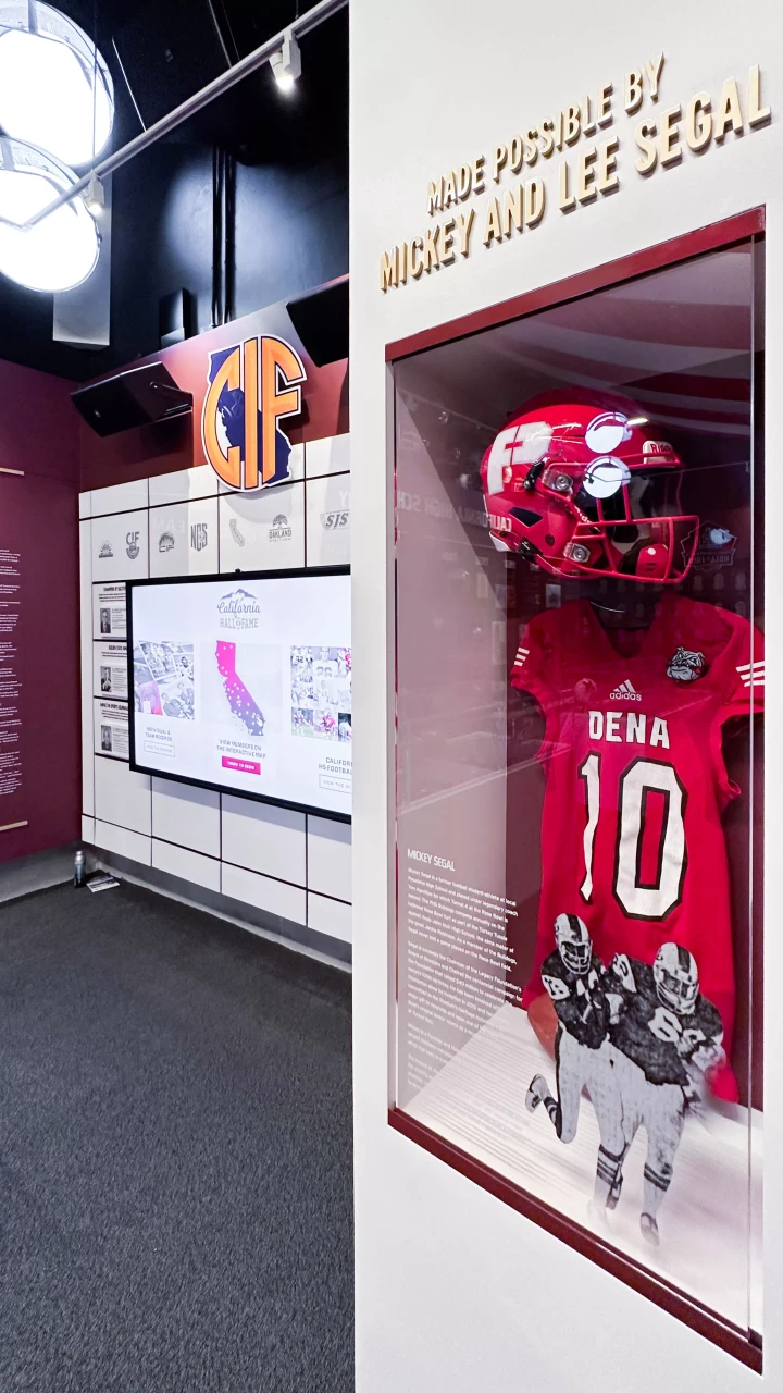 Starting with an empty concrete storage room, Forty Nine Degrees was contracted to help shape the design, brand, and look and feel of the hall of fame, bringing the space to life and creating an experience worthy of honoring some of the greatest football players and coaches from the state of California.