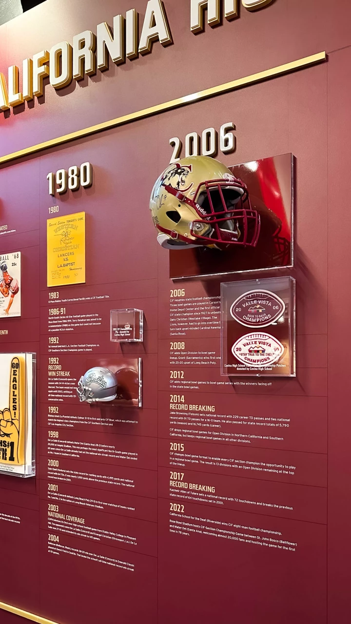 In collaboration with the California Interscholastic Federation, National Football Foundation, and the Pro Football Hall of Fame, the Rose Bowl Legacy Foundation established The California High School Football Hall of Fame in order to honor the history, quality, and overall impact of players, coaches, and integral moments that have shaped the landscape of high school football in the state.