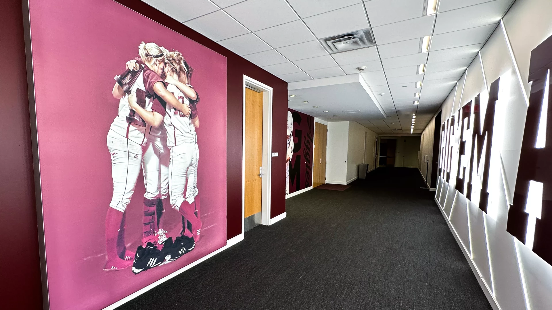 Forty Nine Degrees partnered with Texas A&M Softball to reimagine their facility, creating a space that immerses players and visitors in the true spirit of Aggie Softball. The renovation focused on enhancing the team hallways with a bold softball presence and weaving brand-centric sayings like “Gig ’Em” and “Howdy” throughout the environment. With Adidas branding integrated into the design, the facility underscores the program’s strong partnership while showcasing the success and dominance of Aggie Softball within the SEC.