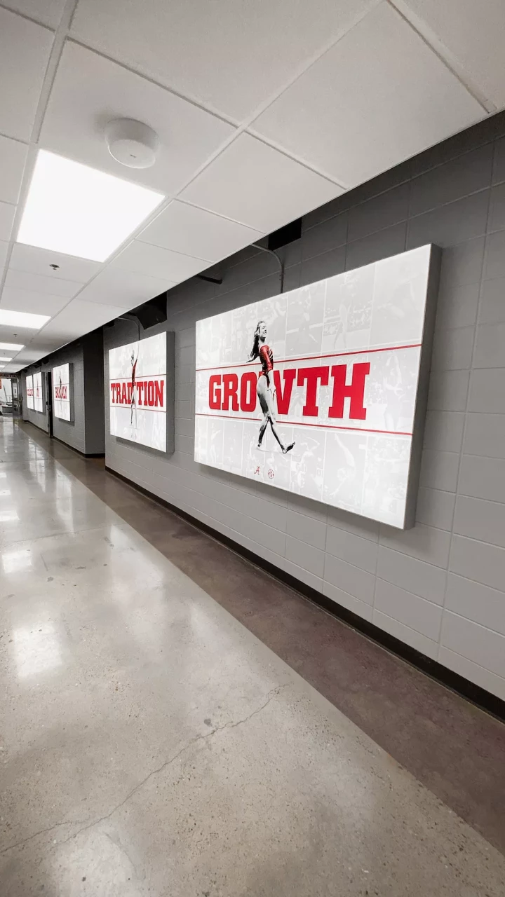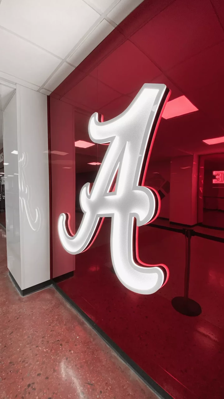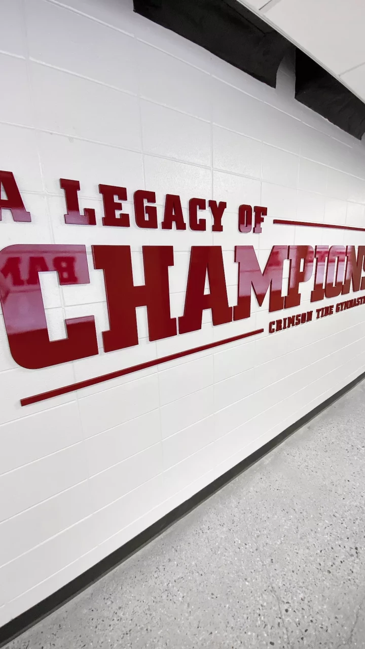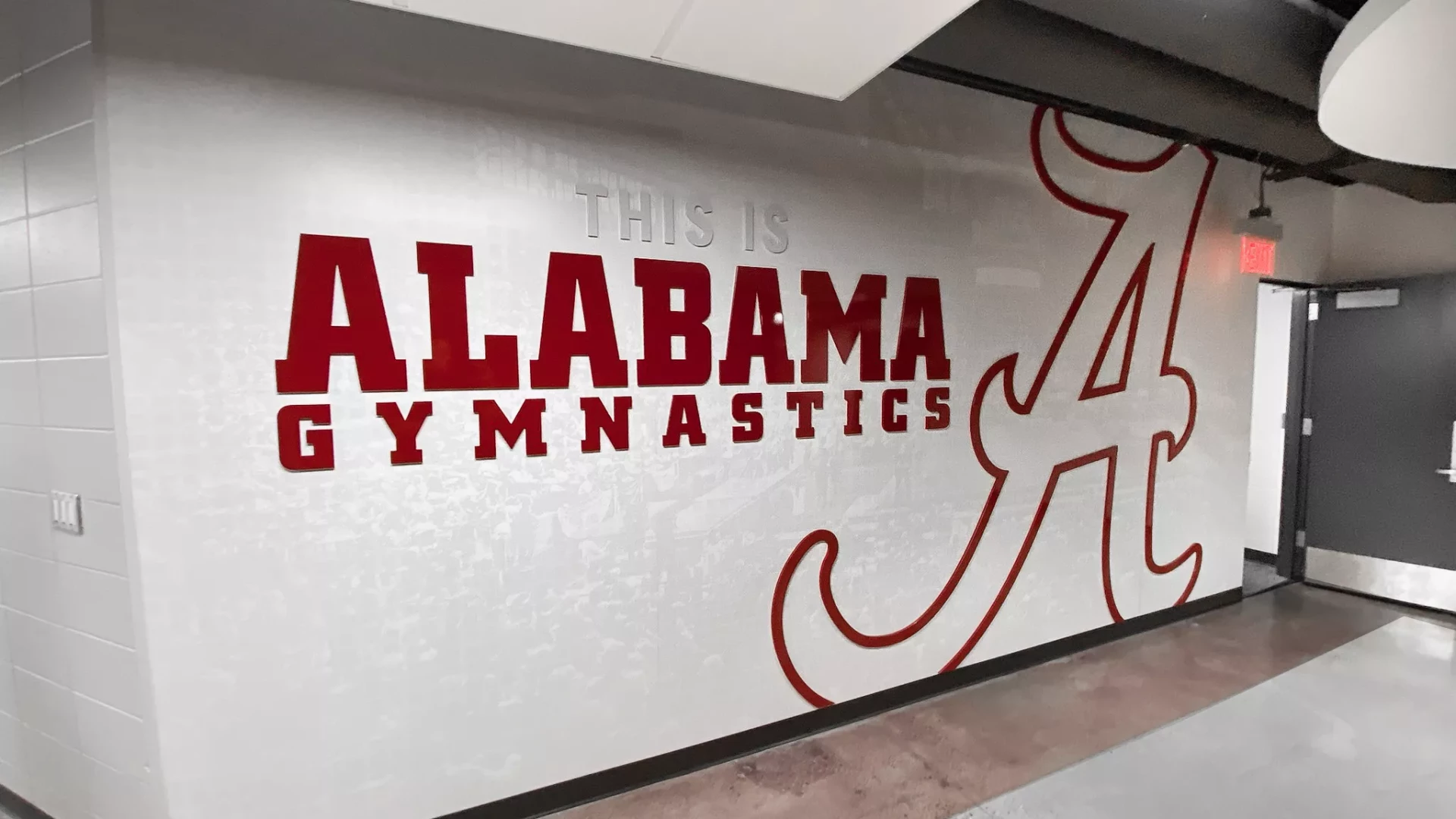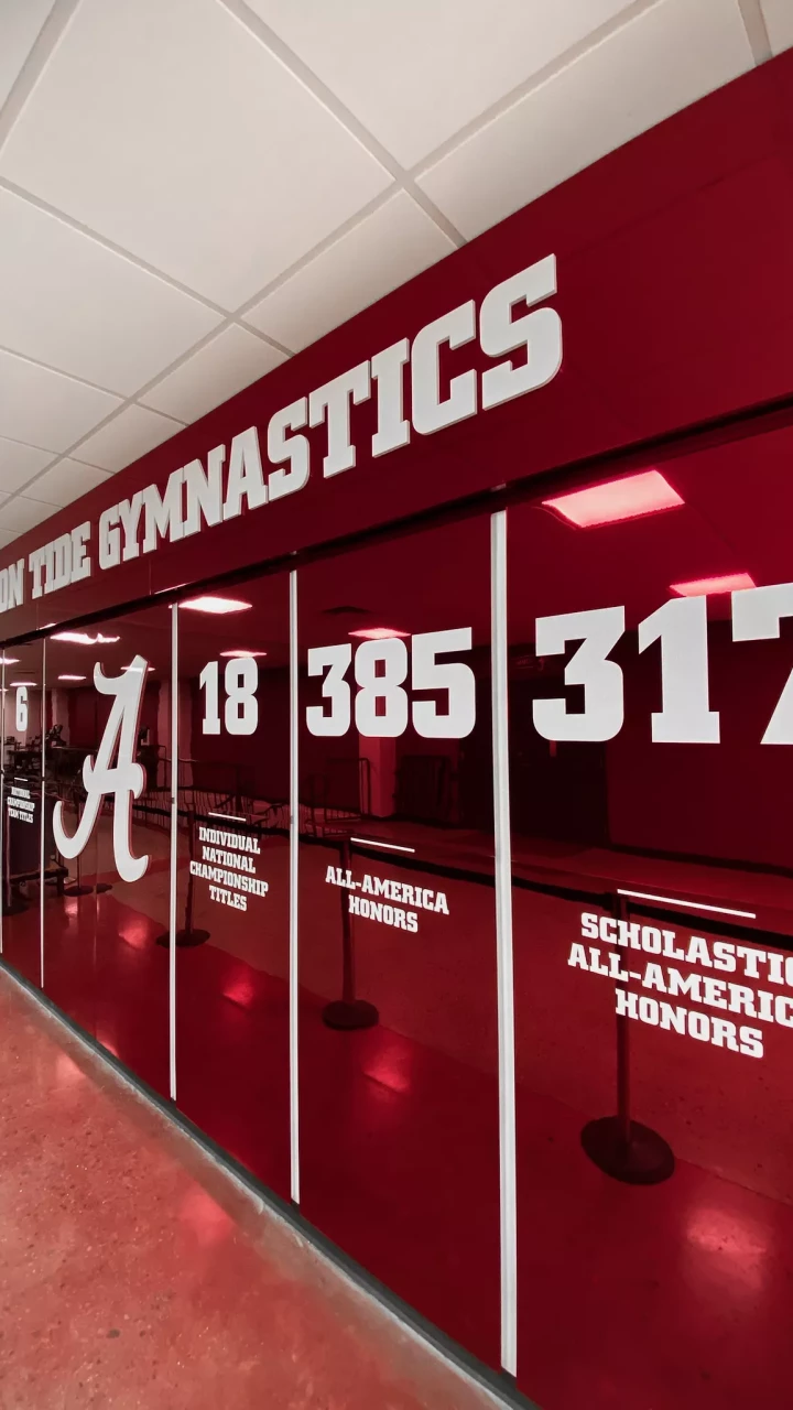 Focusing on tradition and family, new Alabama Gymnastics head coach, Ashley Johnston, wanted to give her girls a place to call home that they are proud of. Forty Nine Degrees utilized large graphics and illumination to modernize the branding and highlight the teams successful legacy.