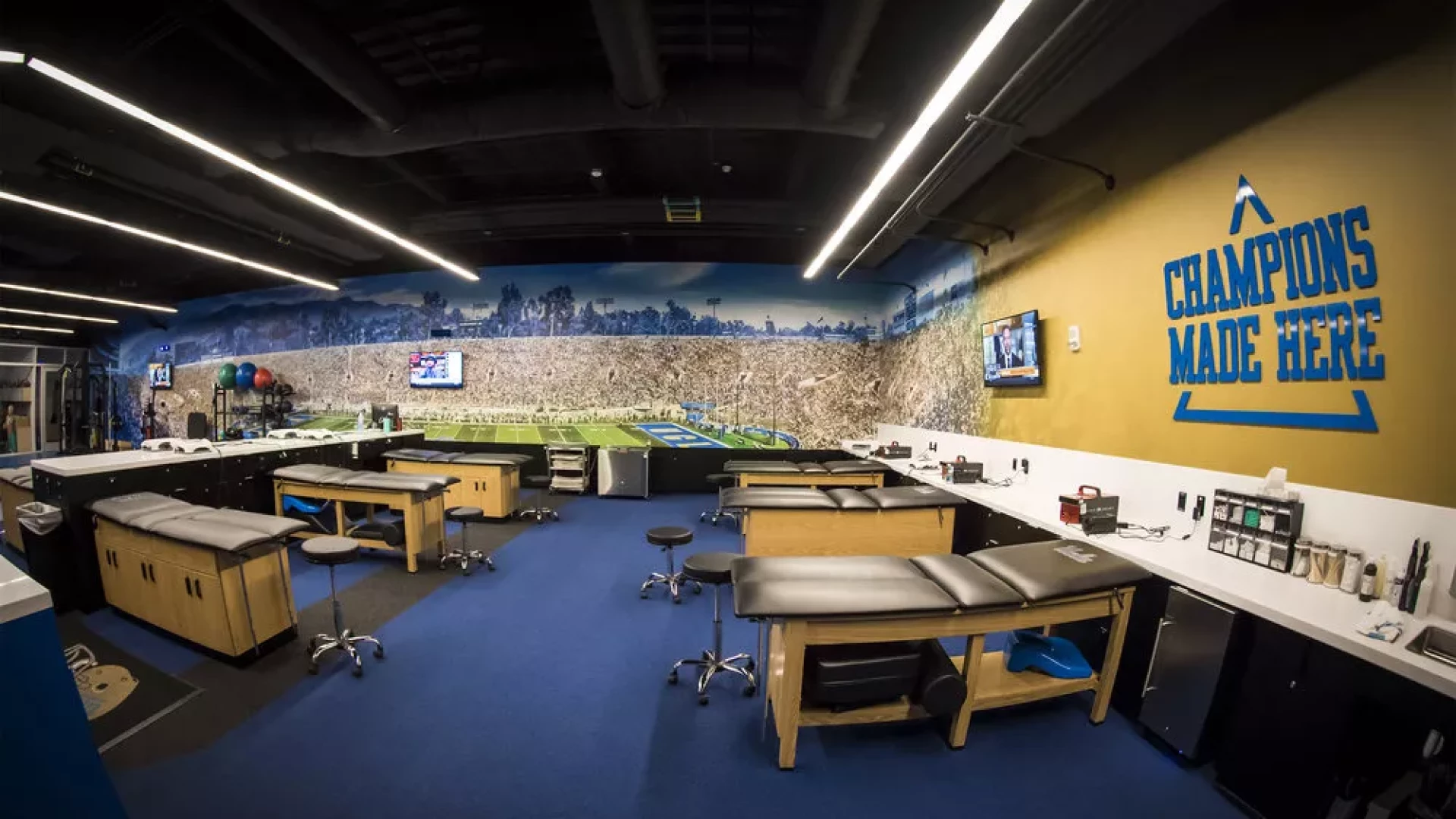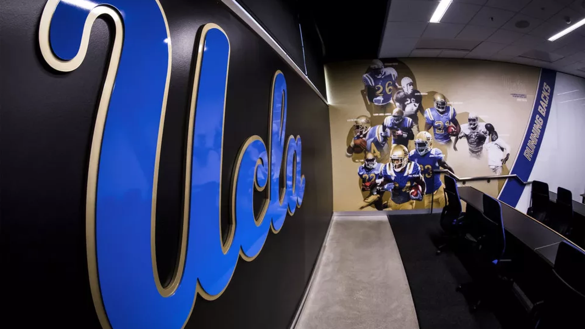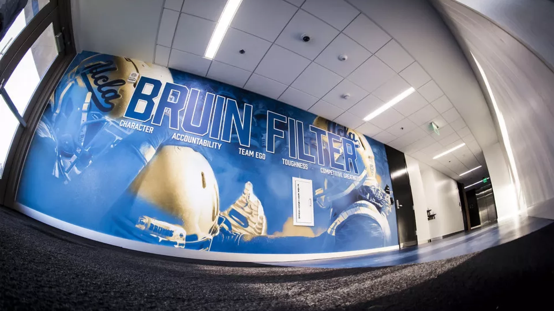 Working with UCLA Football, Forty Nine Degrees brought bold color and graphic impact to the state-of-the-art Wasserman Football Center. Designed by ZGF Architects, the 75,000 square-feet training facility provides a range of amenities including the Troy Aikman Strength and Conditioning Center, locker rooms, training and treatment room, nutrition center, hydrotherapy pools, meeting spaces, barbershop, players' lounge, recruiting lounge and terrace. Large-scale graphics and displays reinforce key program messages and honor the accomplishments of past Bruin Greats.