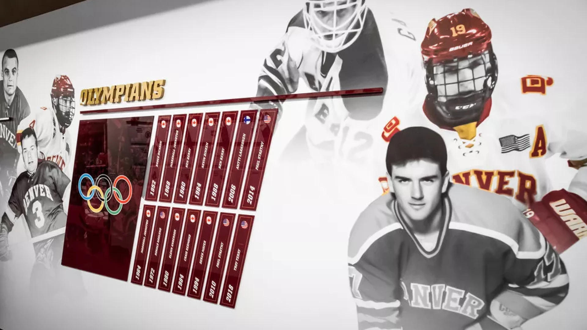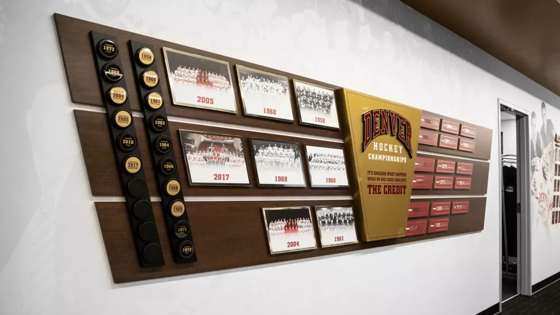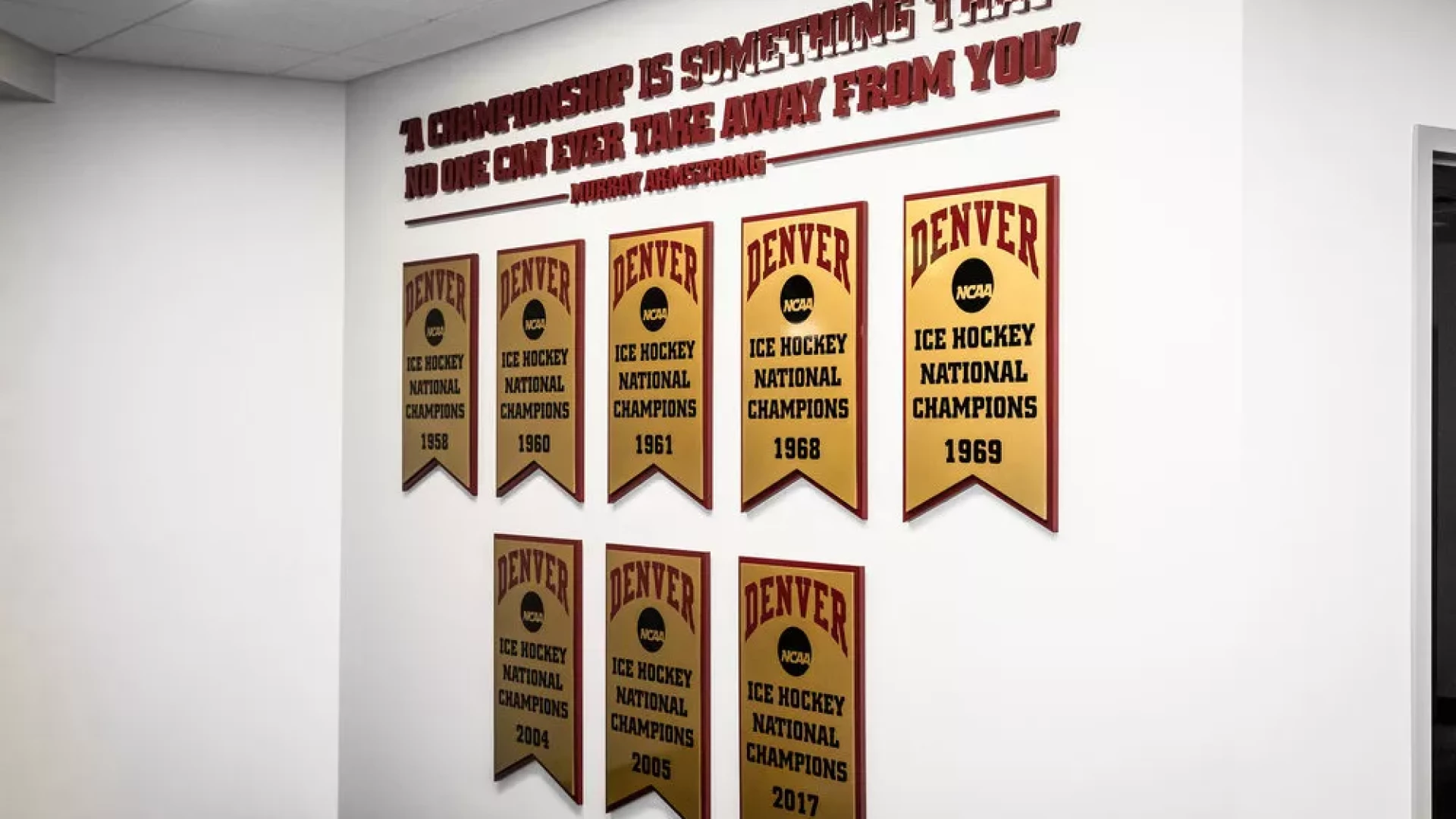 Forty Nine Degrees worked alongside the University of Denver Hockey program to tell their story that honors the past and builds for the future. The 4,464 square foot Miller Hockey Complex demonstrates the University of Denver's commitment to excellence with a growth and winning mindset. Along with recognizing 8 National Championships, the NHL, Olympians and other accomplishments, the facility consists of team locker rooms, player lounge, training room, equipment room and sauna.