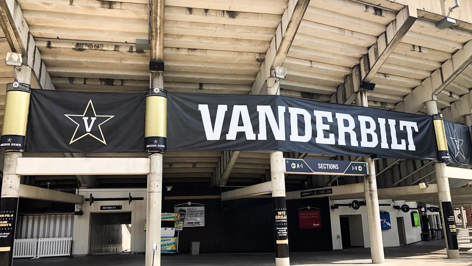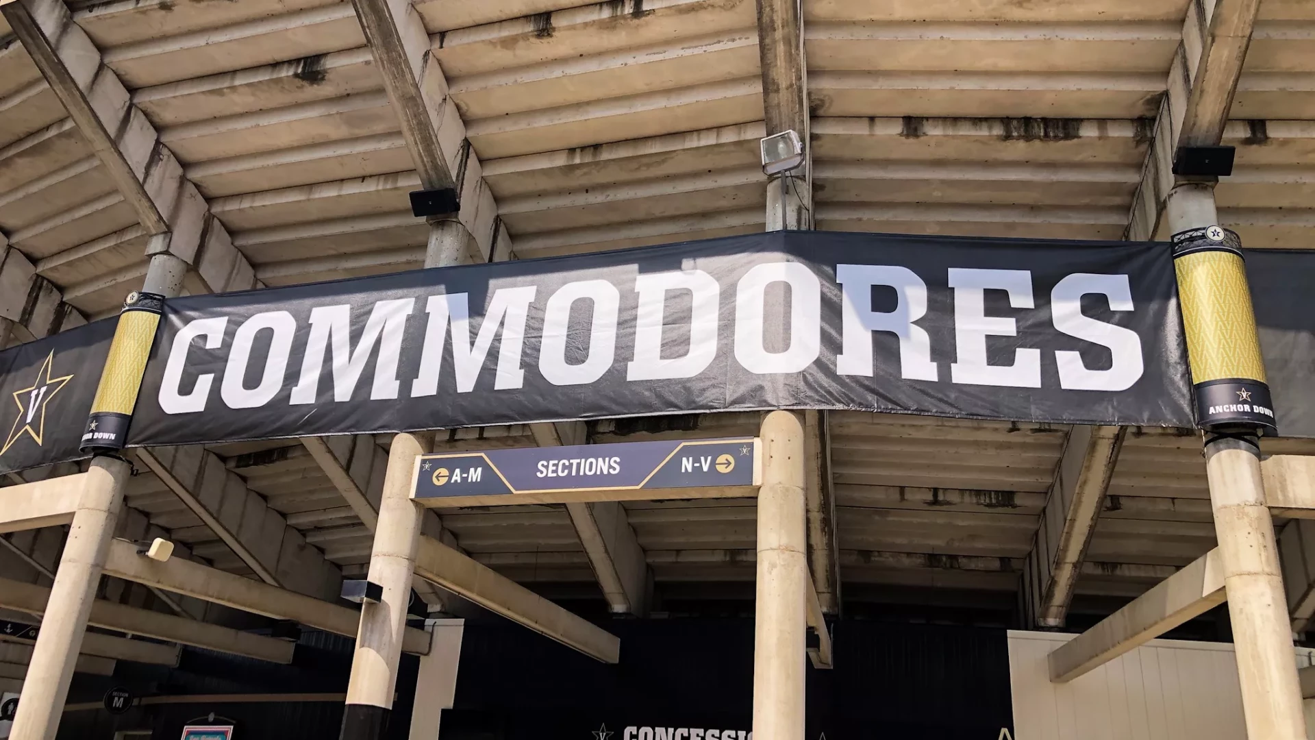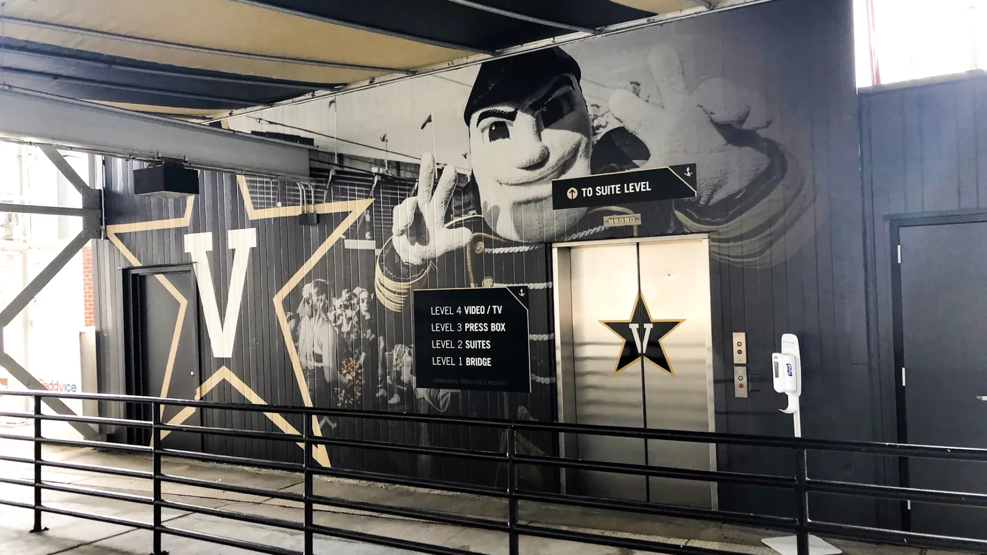 Forty Nine Degrees partnered with Vanderbilt Football to rebrand and redesign their concourse signage throughout FirstBank Stadium. Wayfinding and overhead visual signage were refreshed, and large banners were added to the face of the stadium. Additional branding was also added to the VIP elevator shafts.